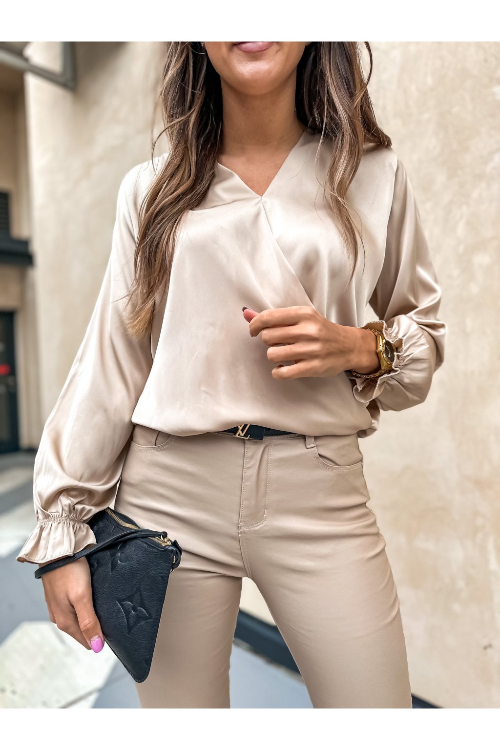 Luxusní saténová halenka originálního střihu. Jde nakombinovat do více stylů. Bude se hodit jak na elegantní způsob, tak bude skvěle vypadat i ke kraťáskům/riflím a například converskám.
