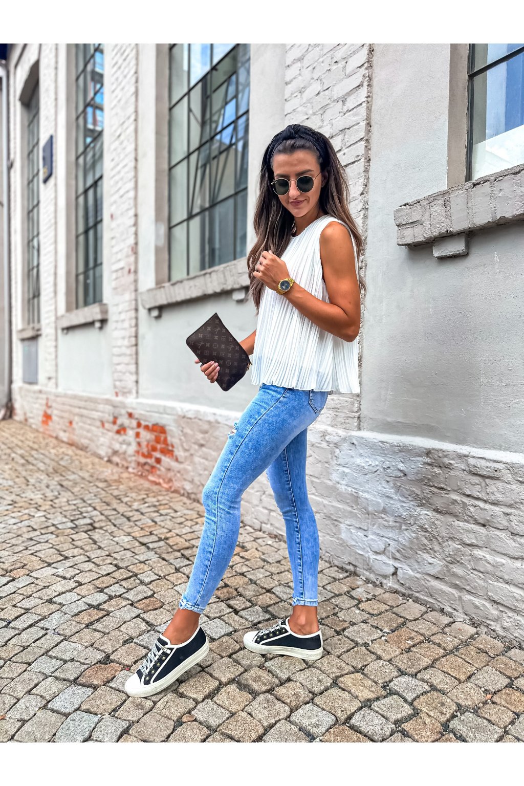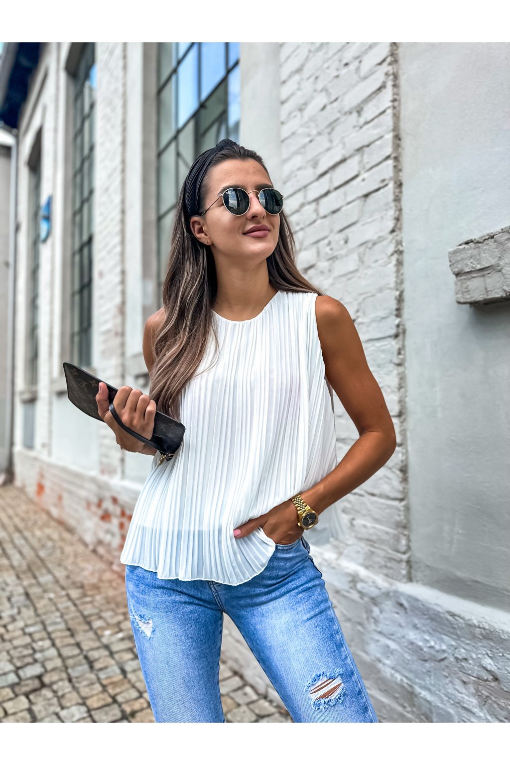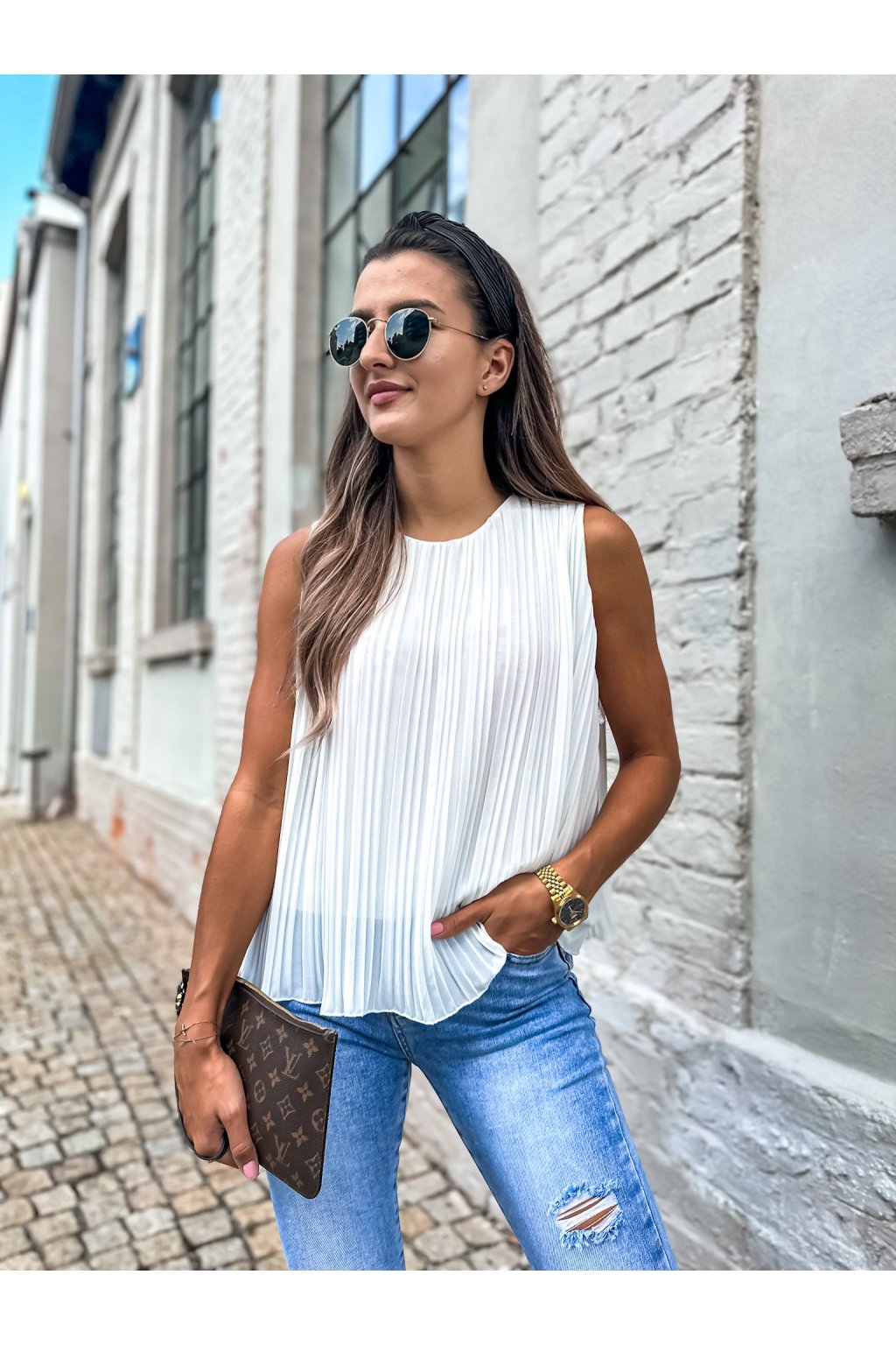 Luxusní dámská plísovaná halenka střihem lehce do A. Unosíte po celý rok. V létě ke kraťáskům, na jaře a podzim k riflím, v zimě například k saku. Hodí se jak k teniskám, tak na slavnostnější příležitosti.