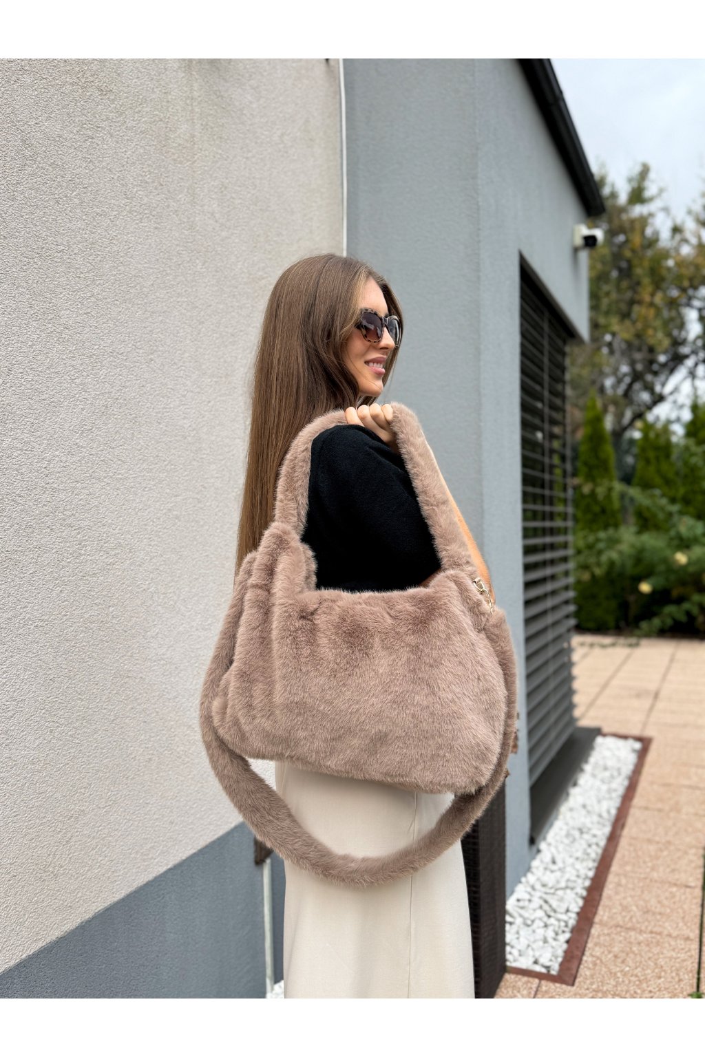 Stylová kožešinová taška se zlatými detaily a odnímatelným popruhem dodává outfitu luxusní a zároveň hravý prvek. Vyrobena z měkkého a příjemného materiálu, uvnitř nabízí jednu kapsičku na zip a dvě postranní kapsy pro praktické uspořádání drobností. Taška se skvěle hodí k elegantním i casual outfitům a lze ji nosit přes rameno i v ruce.