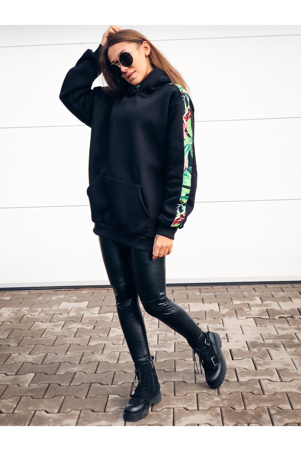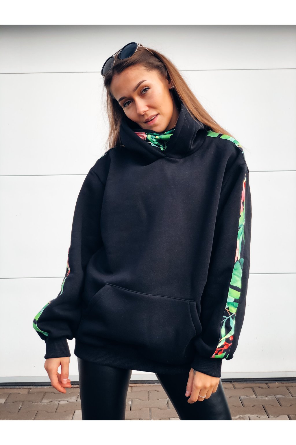 Stylová oversize mikina s rouškou, 2v1 s doplňkem po stranách rukávů. Rouška je k mikině přišitá, ale není nutné ji využívat, při nevyužití poslouží jako šátek na krk. Mikina má kapuci, klokaní kapsu a je vyrobena z kvalitní počesané teplákoviny, která je tepleješí a mohutnější než klasická tenká teplákovina. Nosit ji můžete k legínám či riflím. Naprosto bomba kousek, který si zamilujete.