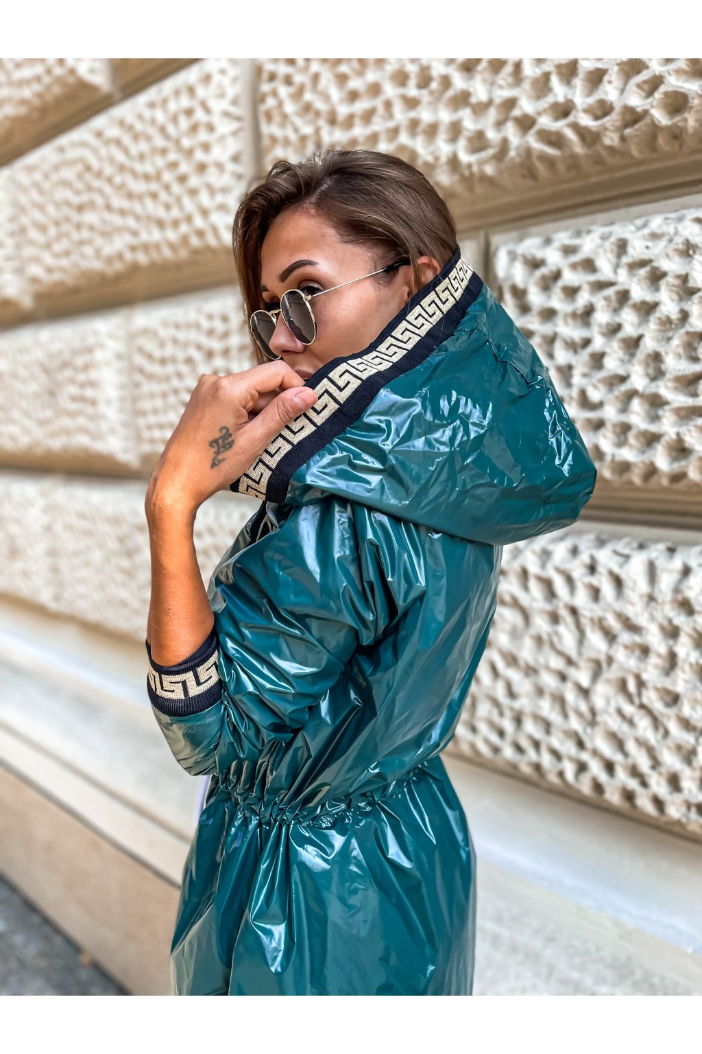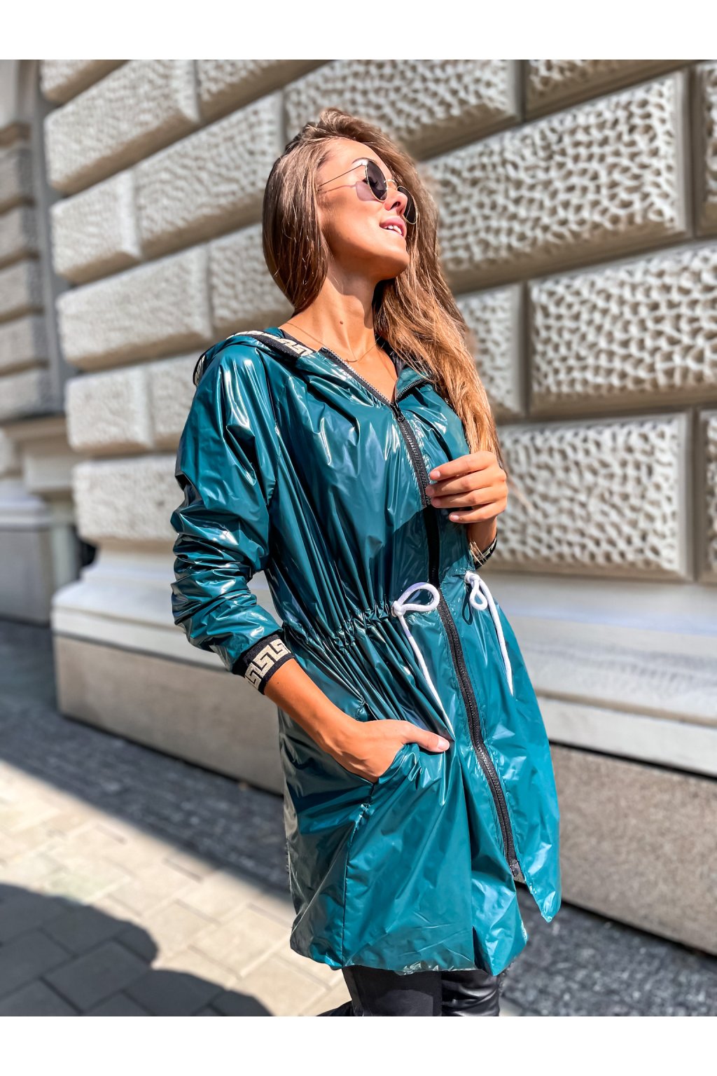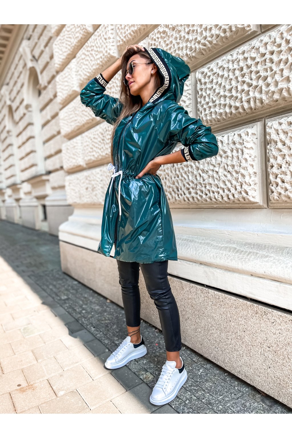 Stylová dámská prodloužená bunda s kapucí. Je na zip, má doplňky na rukávech, kapuci a stahuje se v pase podle velikosti. Bunda má kapsy po stranách. Jestli hledáte originální kousek, tak tohle je ta správná volba.