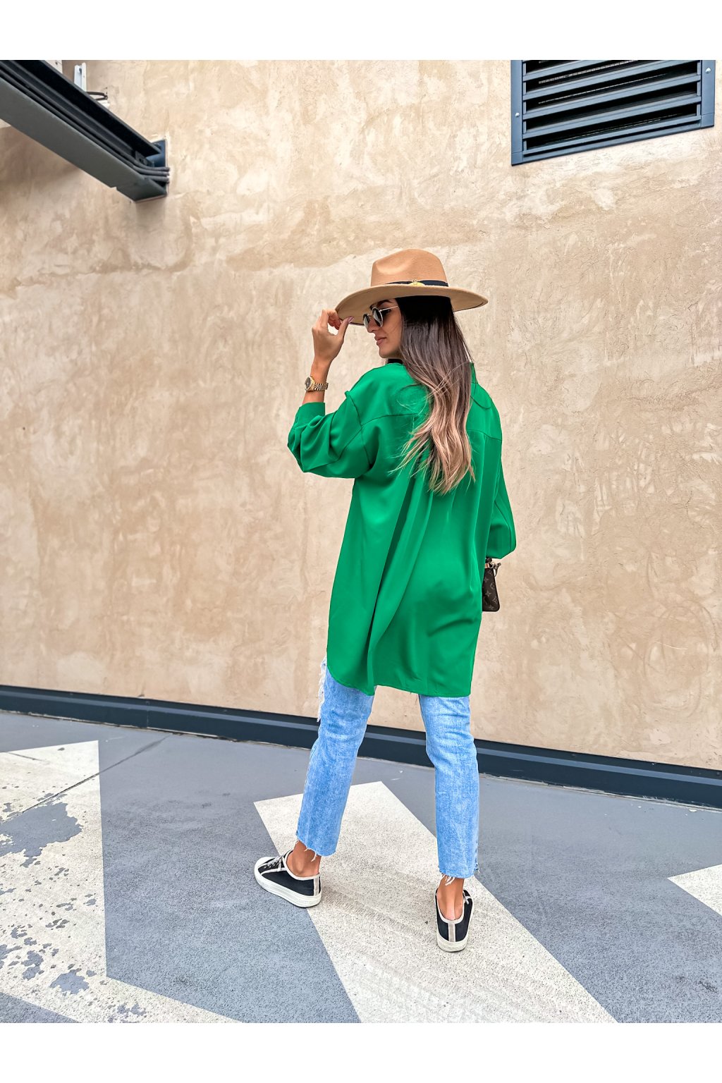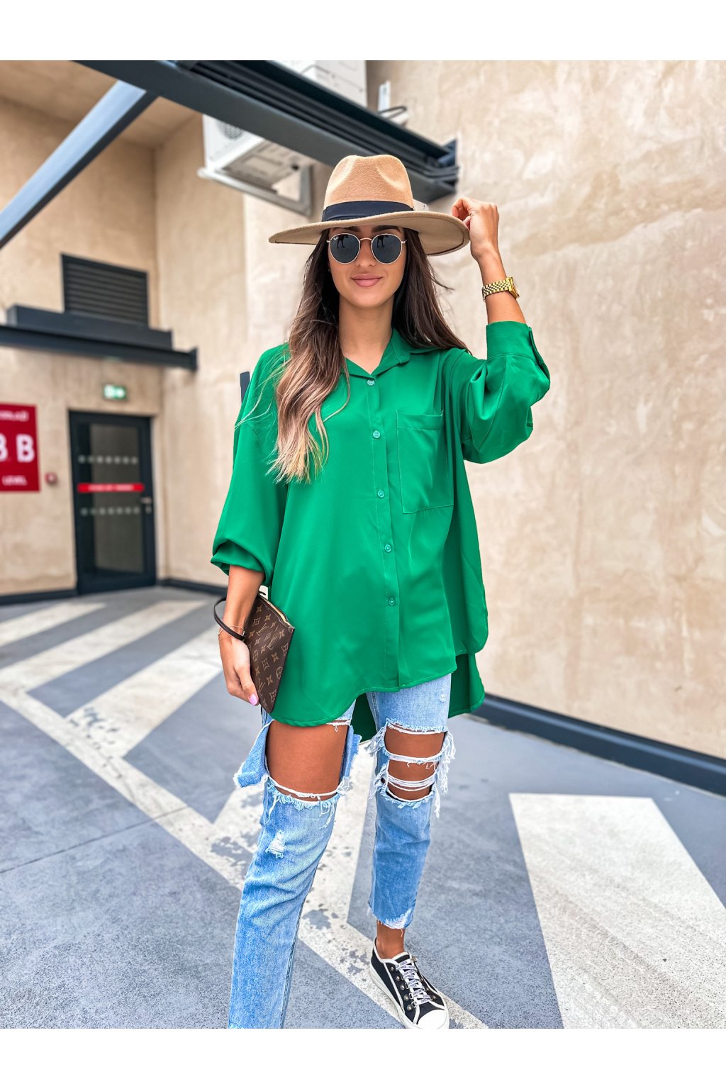 Stylová dámská prodloužená košile ze skvělého jemného materiálu, lehce připomínající satén. Košile je oversize a vzadu je delší. Lze využít celoročně, na jaře/podzim k riflím, v létě ke kraťáskům nebo jako přehoz na plavky/tílko a v zimě pod svetry.