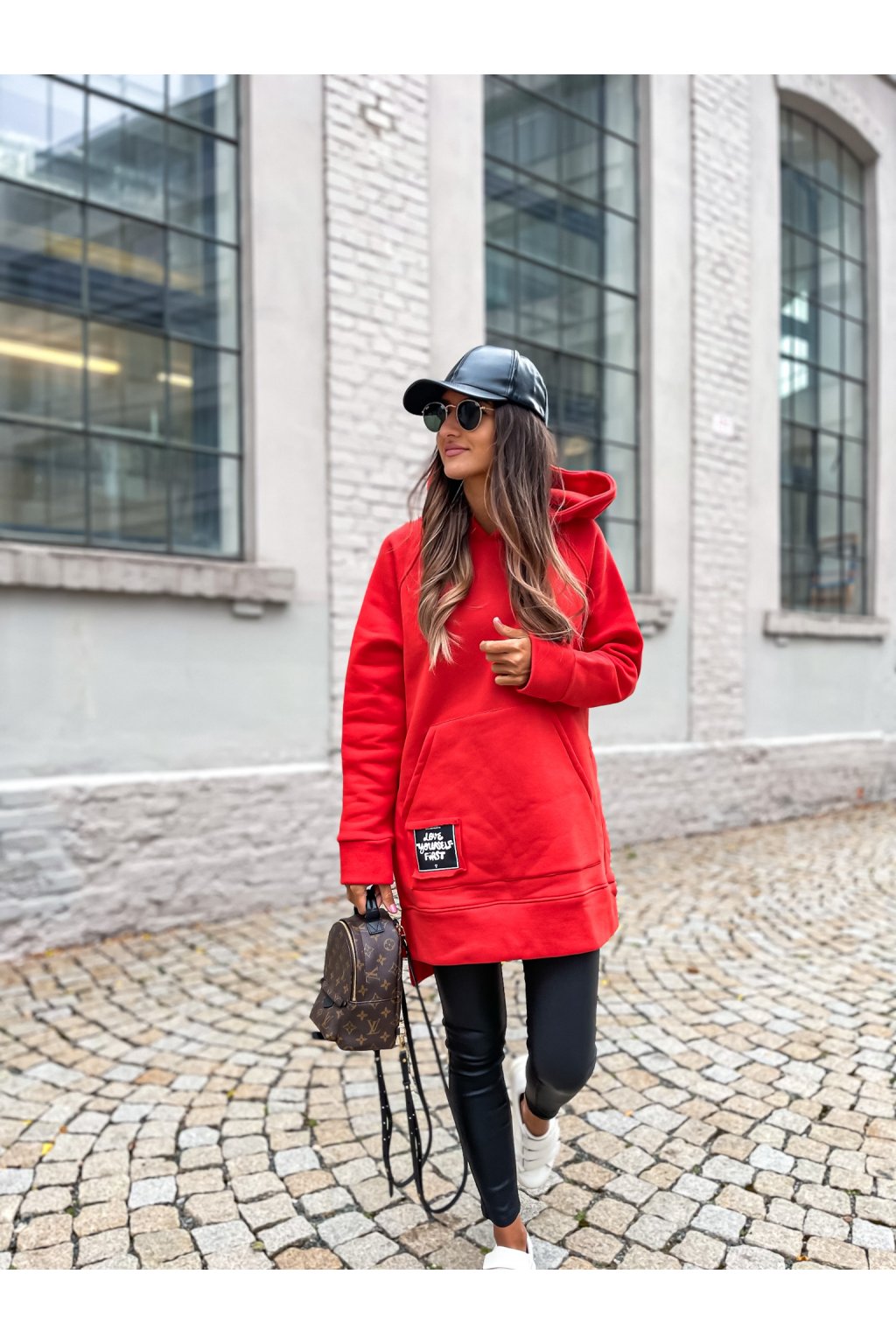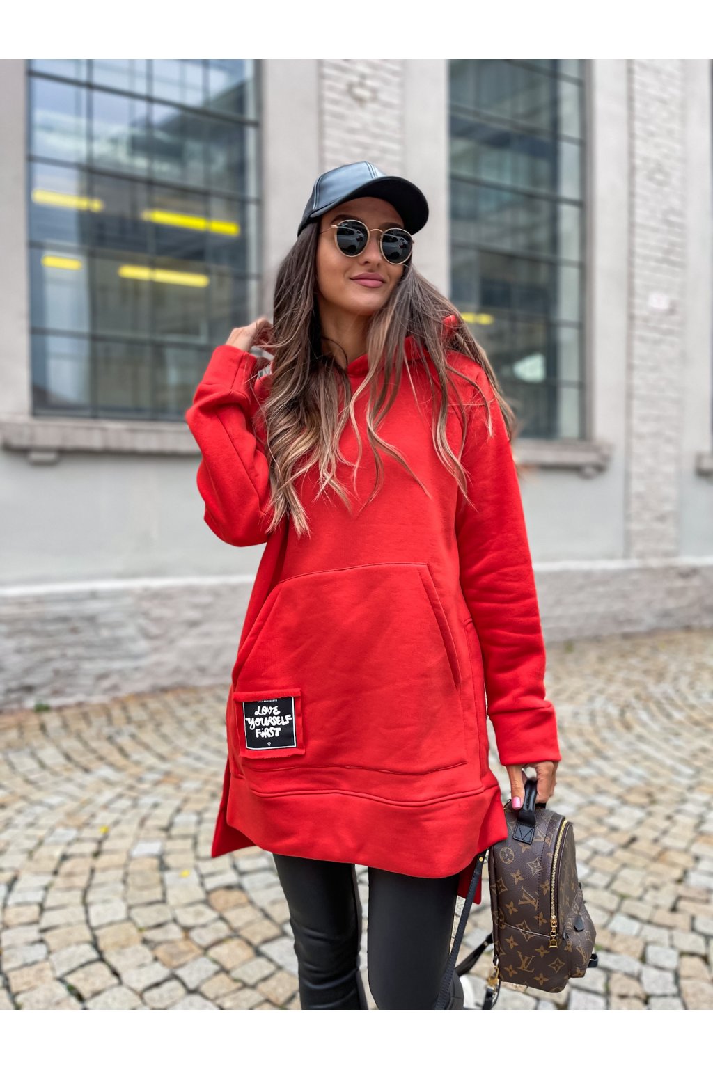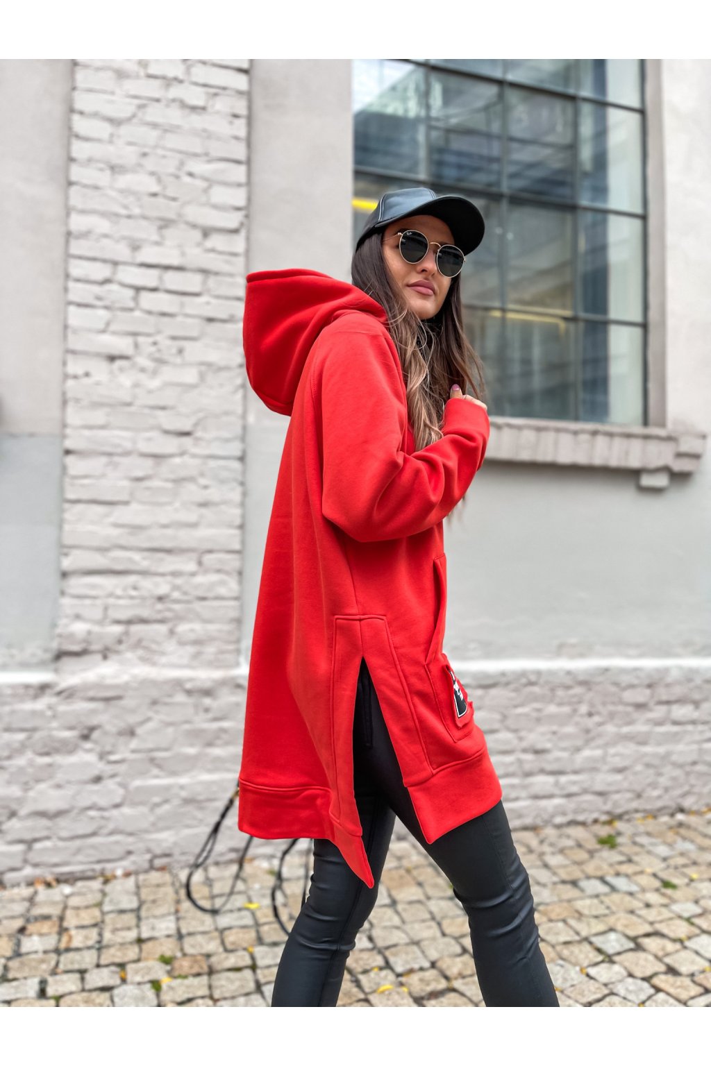 Stylová dámská prodloužená mikina Love. Mikina je vzadu lehce delší. Má kapuci, klokaní kapsu a rozparky po stranách. Na pravé straně je vyšívka. Originální a nadčasový kousek, vyrobený z kvalitní počesané teplákoviny, která krásně hřeje a je velmi příjemná na dotek.