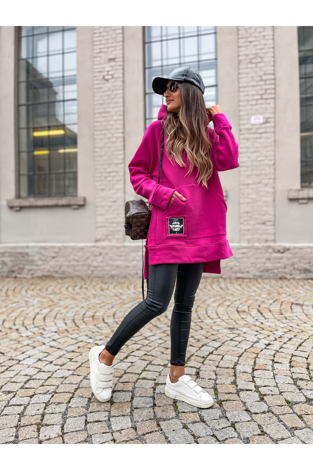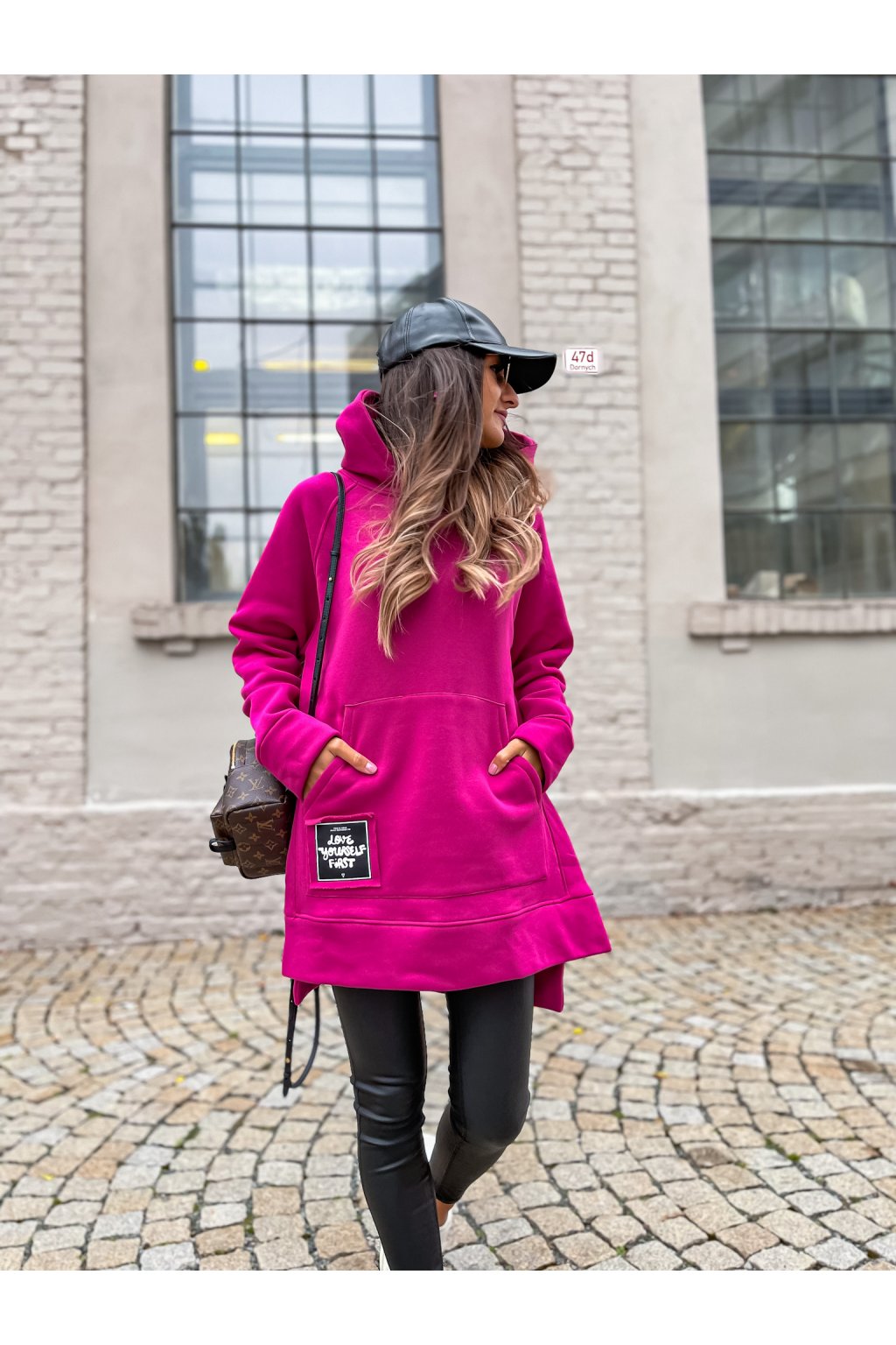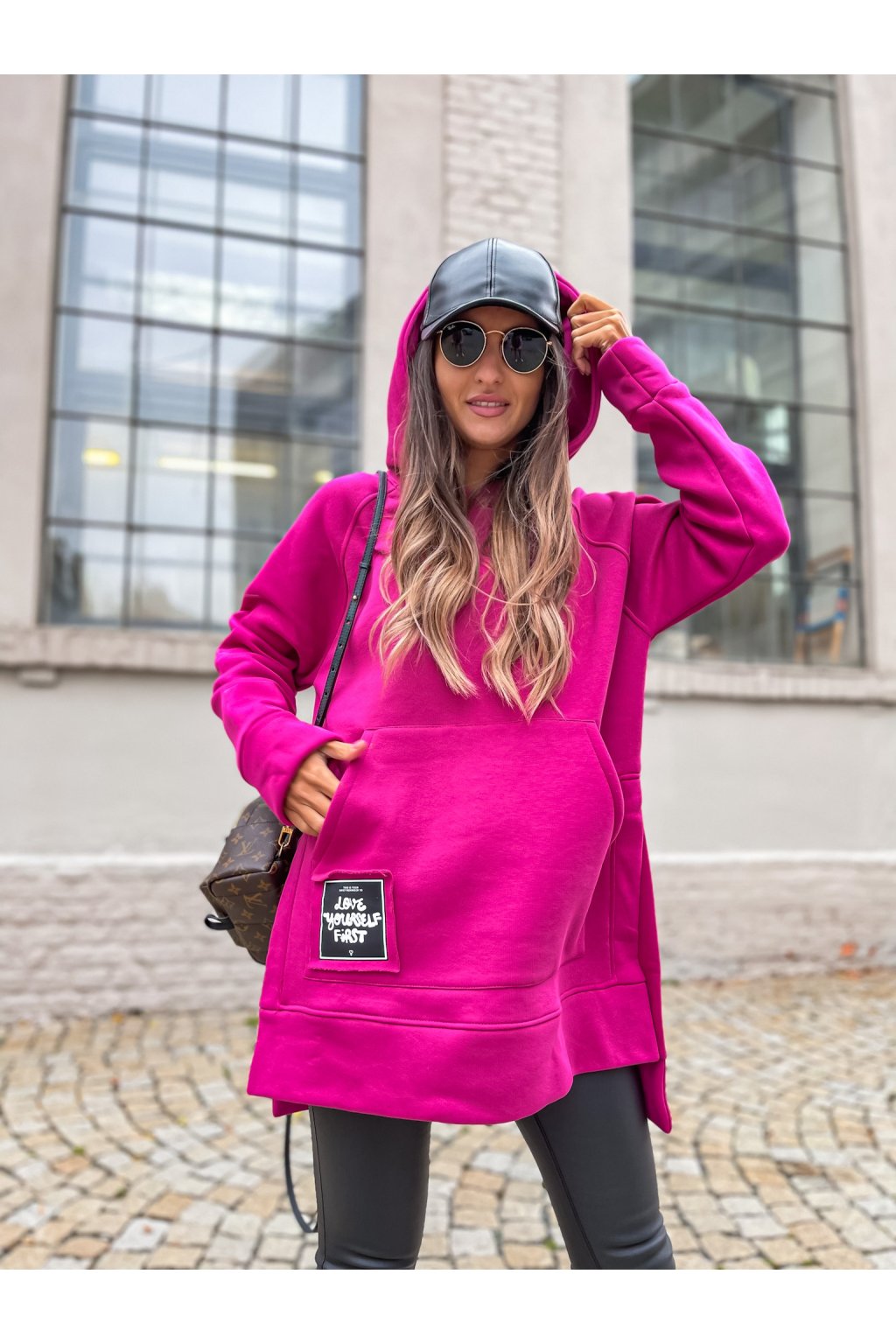 Dámská prodloužená mikina s kapucí Love Fuchsia