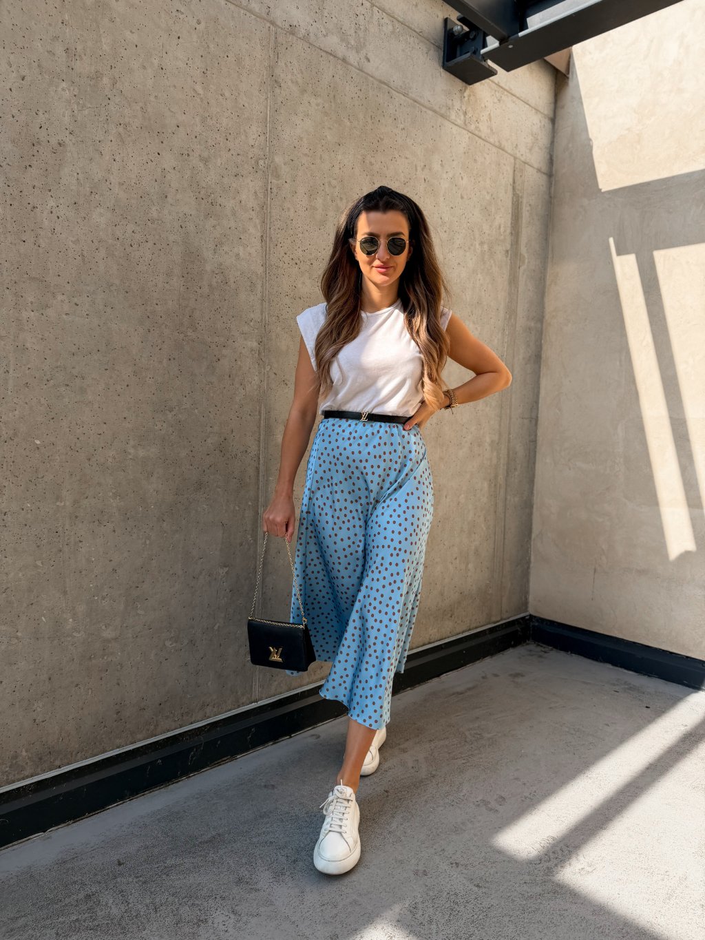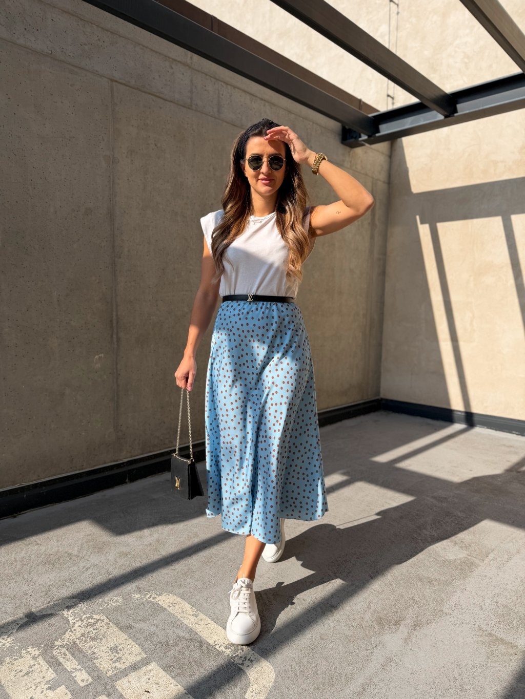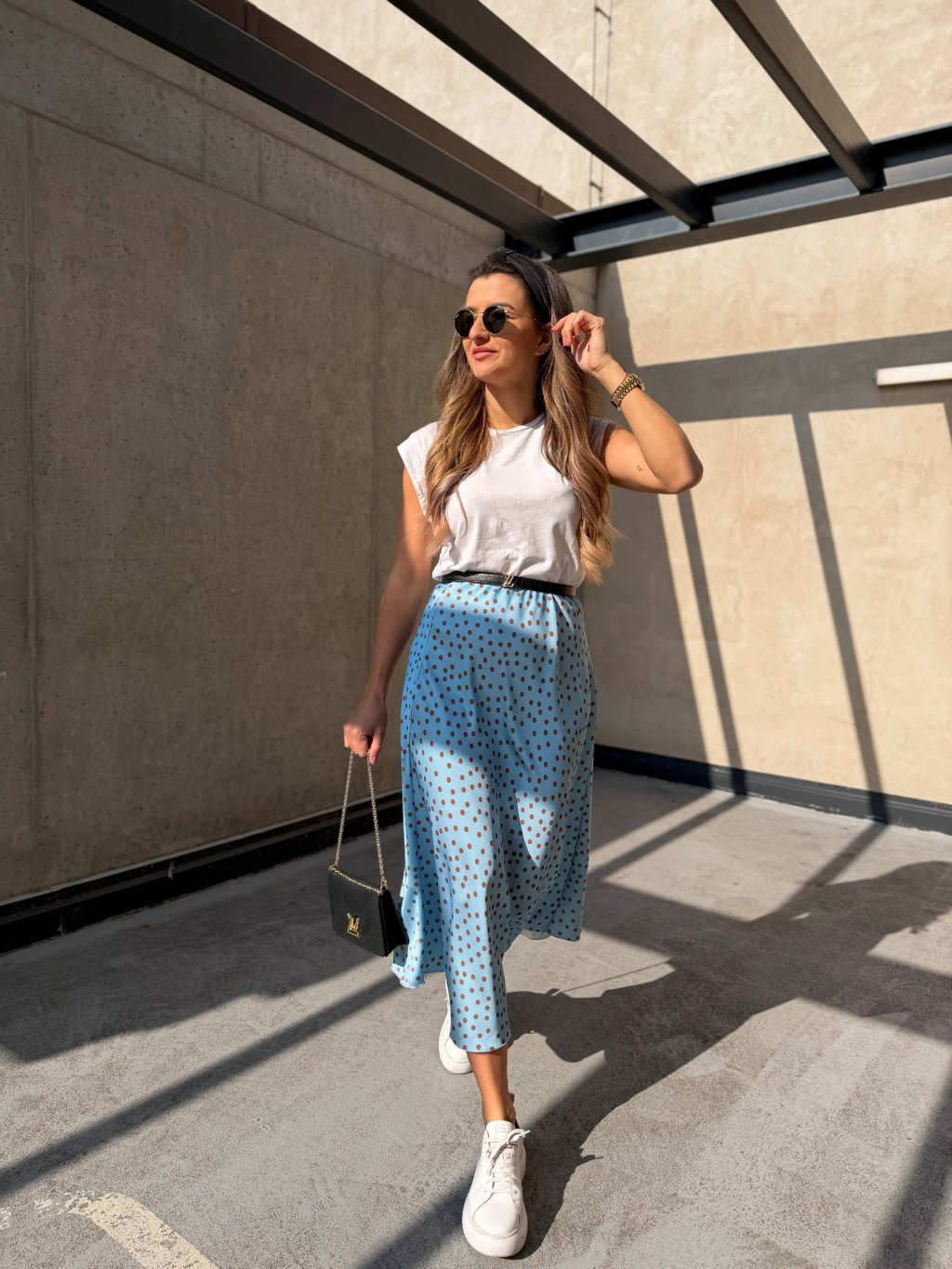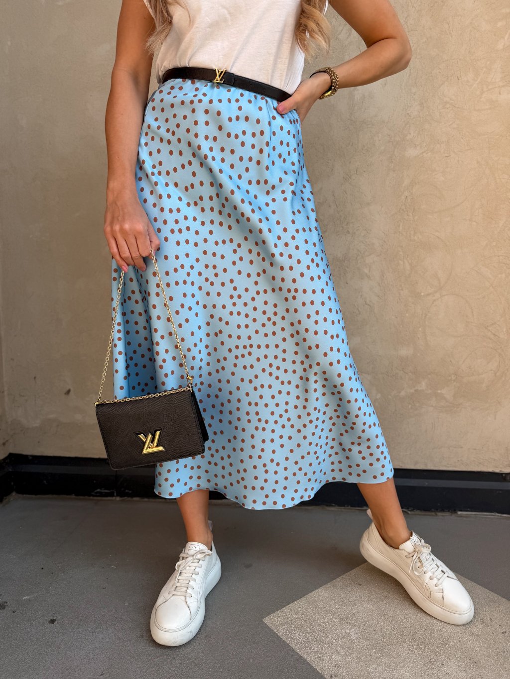 Dámská saténová sukně Clare Dot Sky Blue