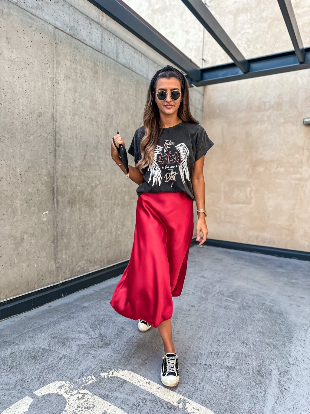 Dámská saténová sukně Clare Red PRODLOUŽENÁ!