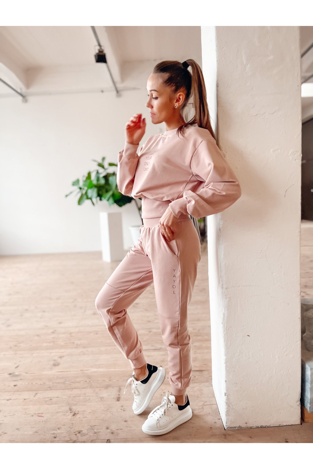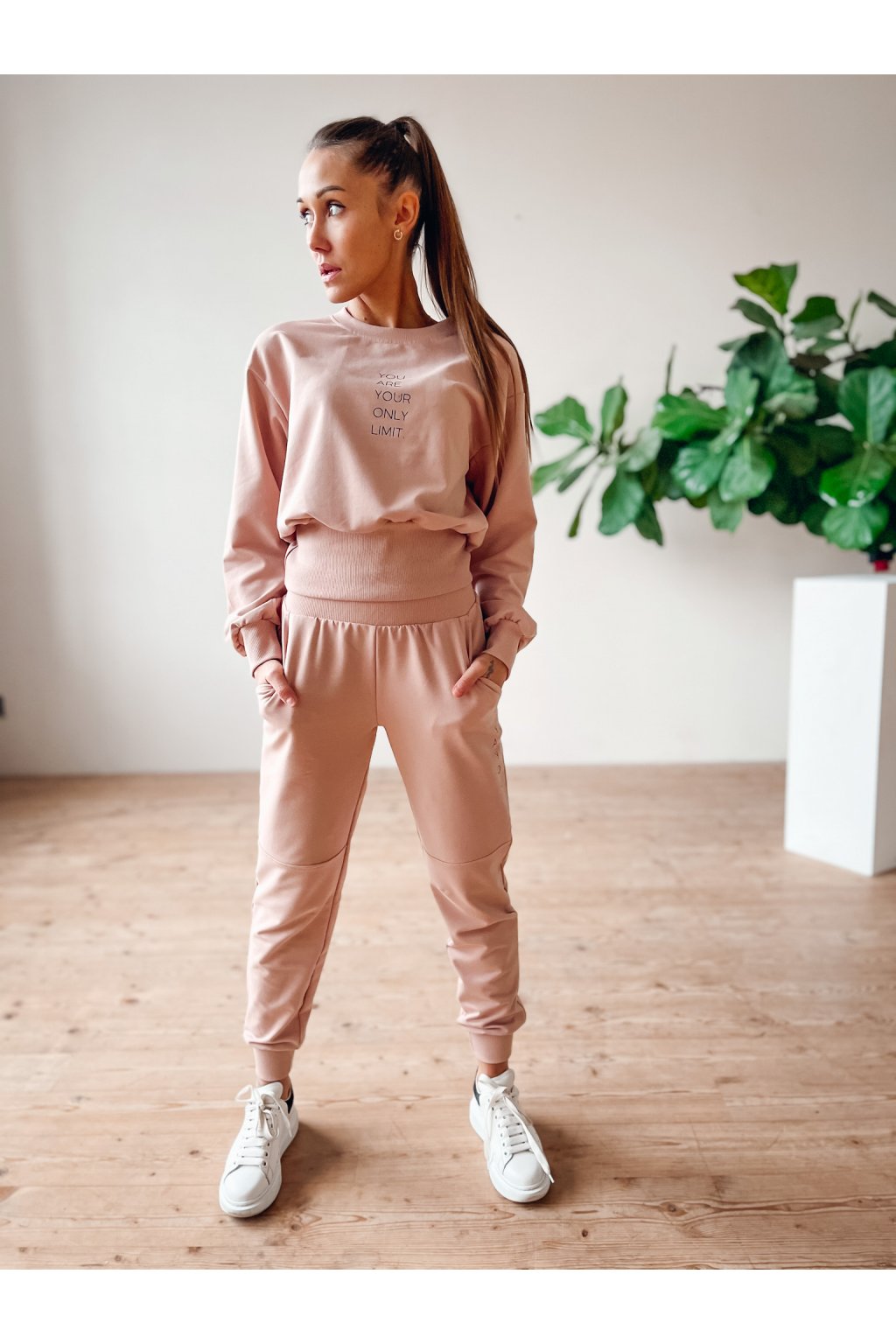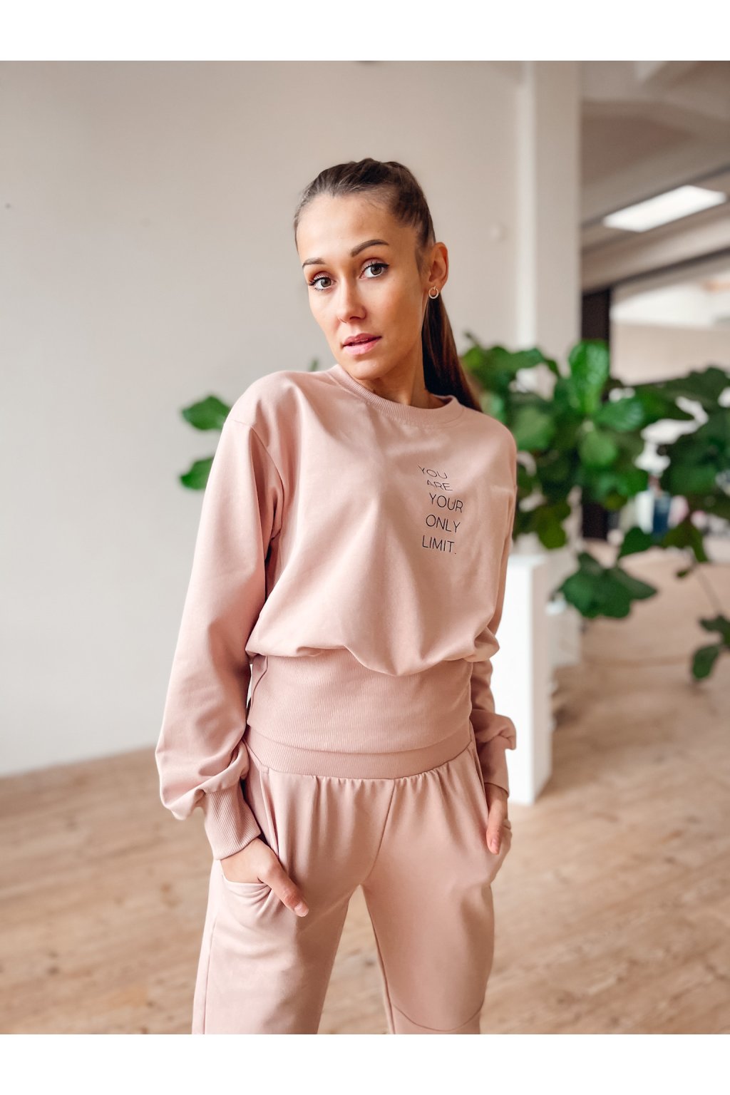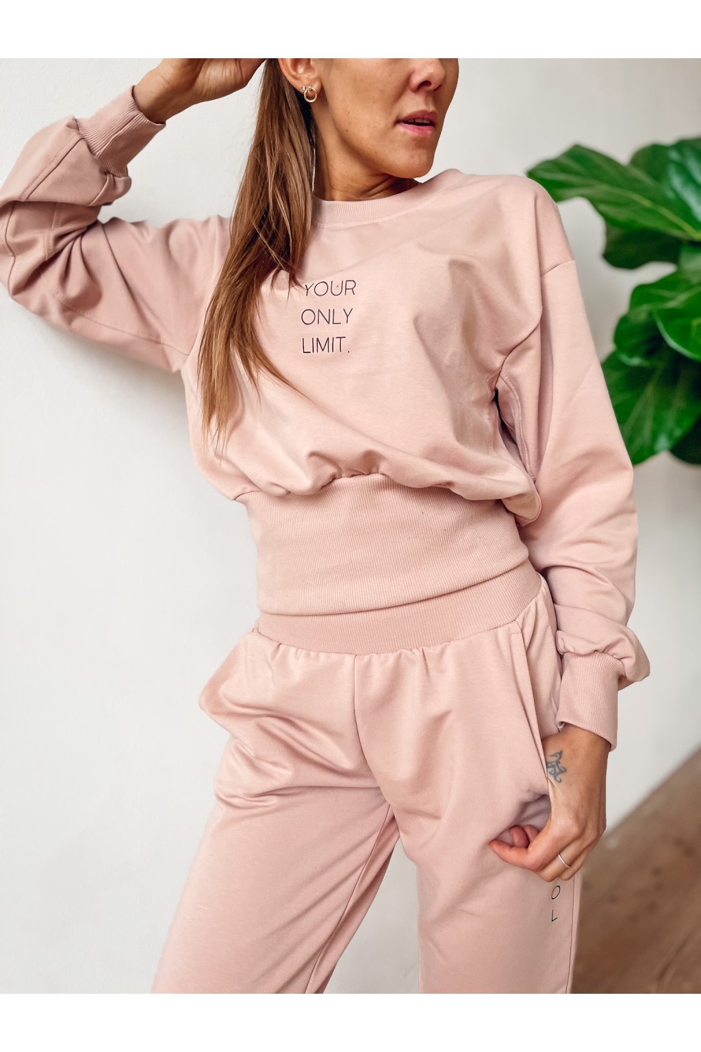 Dámská stylová tepláková souprava s kratší mikinou. Mikina s potiskem You Are Your Only Limit. Tepláky mají kapsy po stranách. Skvělý kousek na domácí lenošení i na pohodlné nošení venku. Jemný, velmi příjemný materiál na dotek a nošení.
