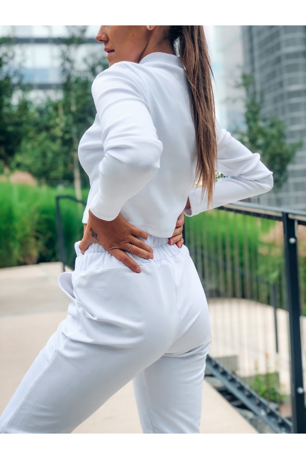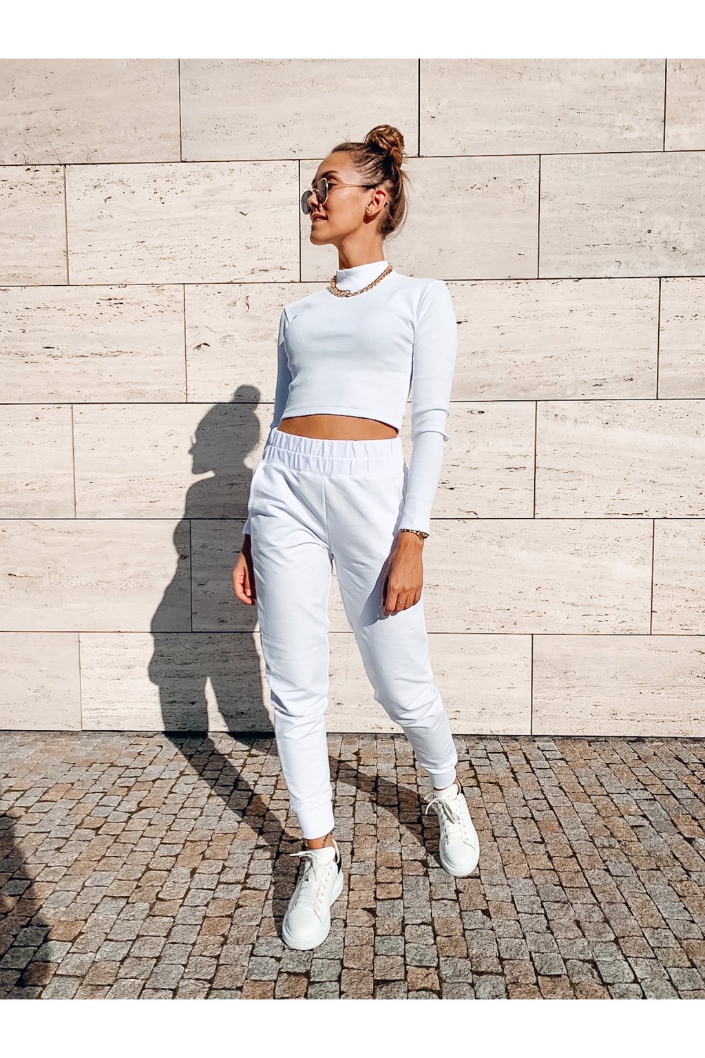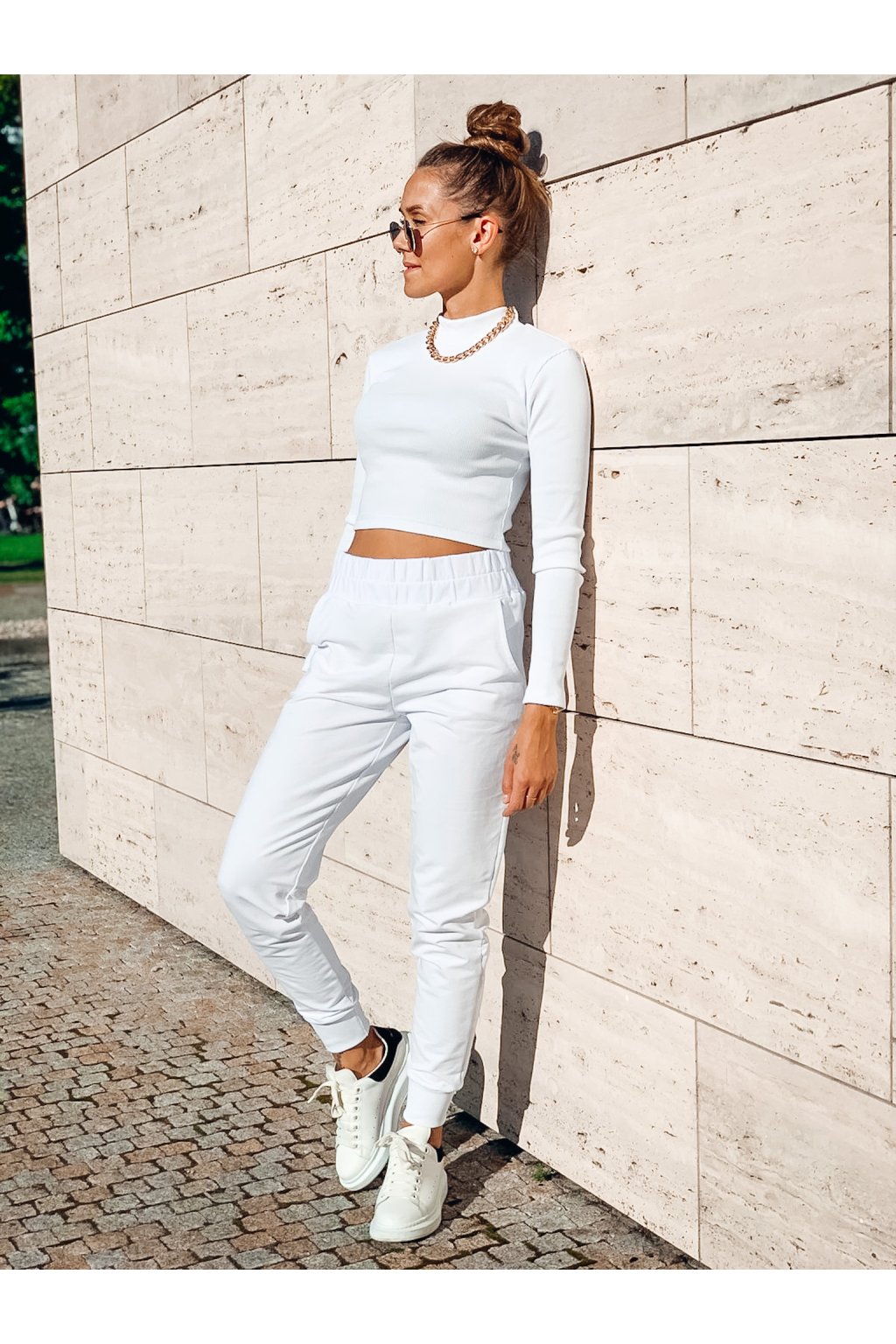 Stylová dámská tepláková souprava Merci v barvě White. Top je ze žebrovaného materiálu a krásně obepíná postavu. Tepláky jsou z příjemné teplákoviny, mají gumu v pase a dole mají žebrovaný lem. Ideální kousek pro ženy, které milují pohodlí, ale zároveň chtějí být stylové.