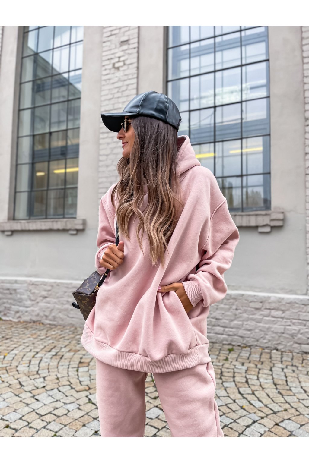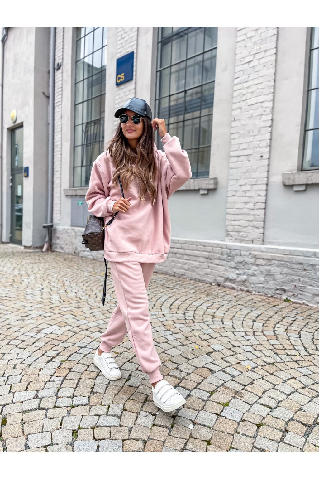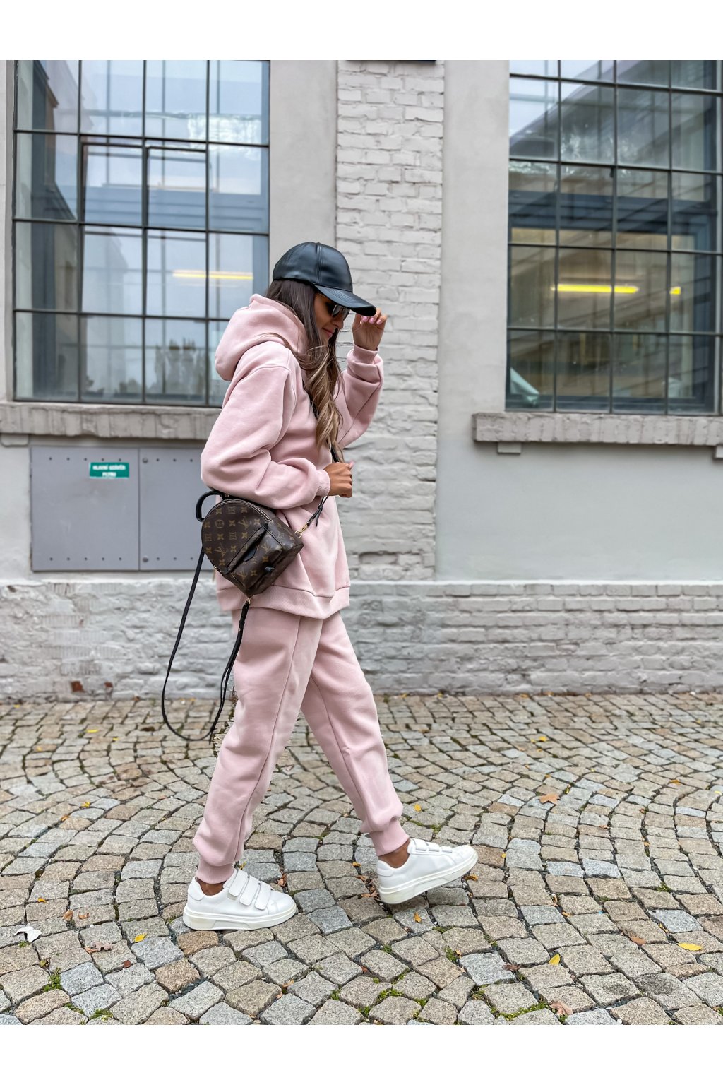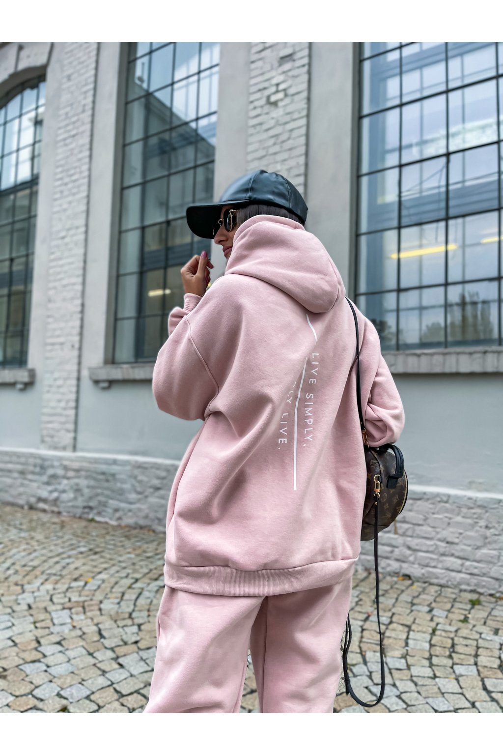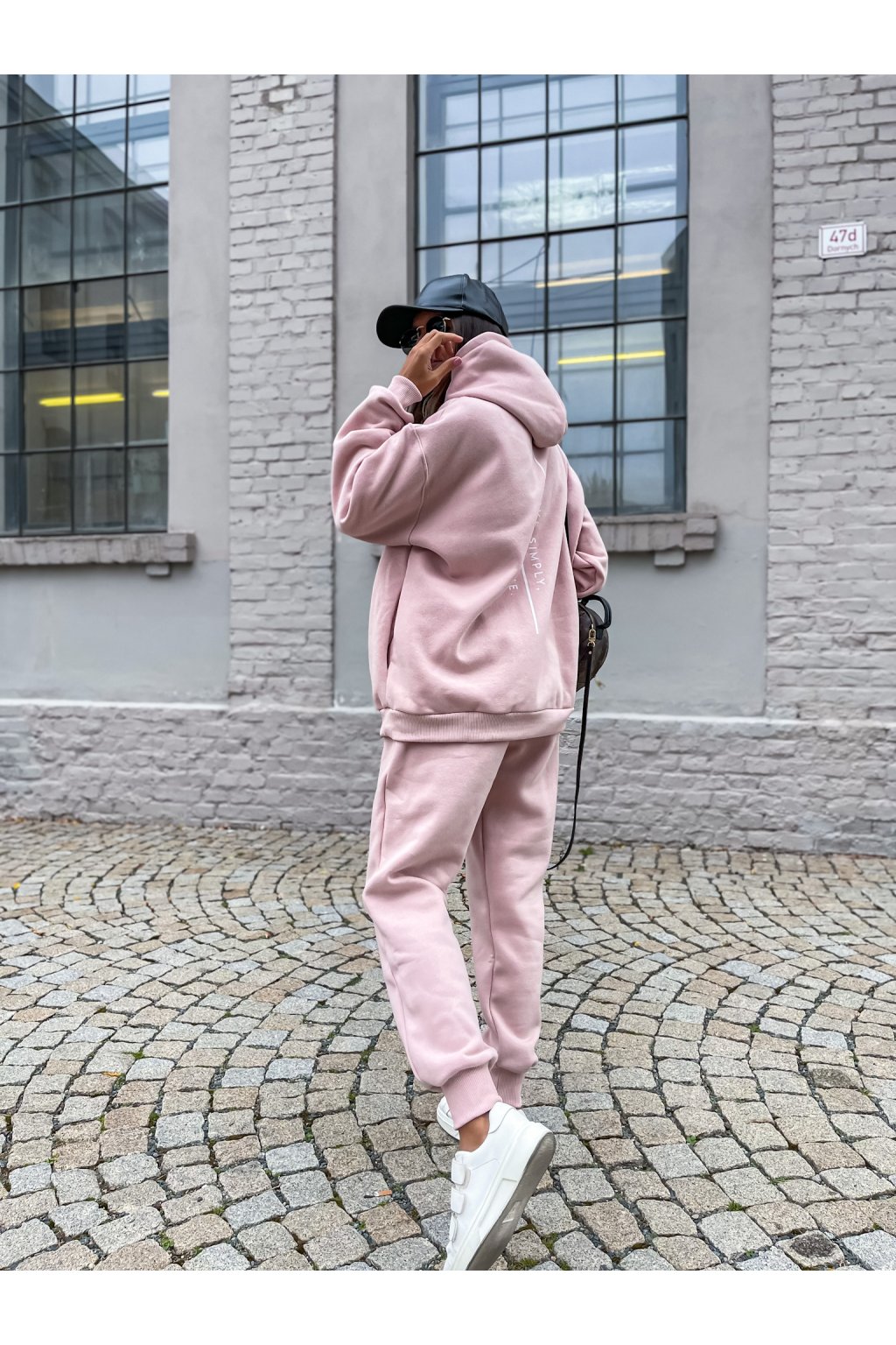 Stylová dámská tepláková souprava s kapucí a potiskem na zádech. Mikina má kapuci a kapsy po stranách. Tepláky mají také kapsy po stranách. Originální a nadčasový kousek, vyrobený z kvalitní počesané teplákoviny, která krásně hřeje a je velmi příjemná na dotek.