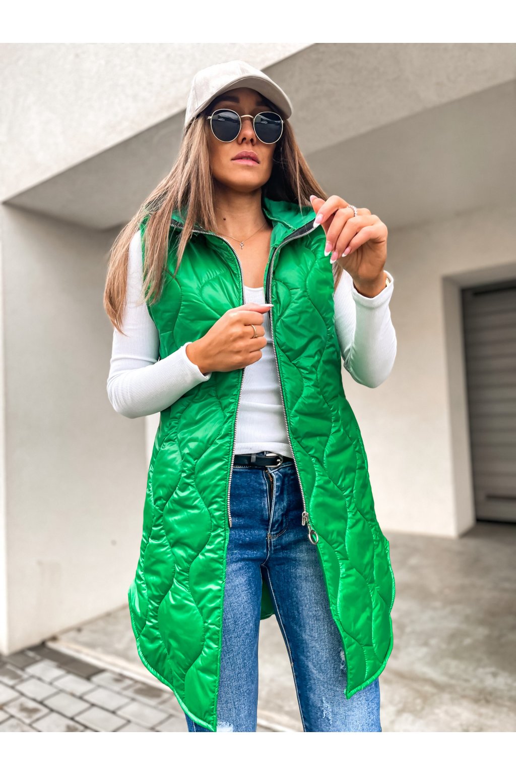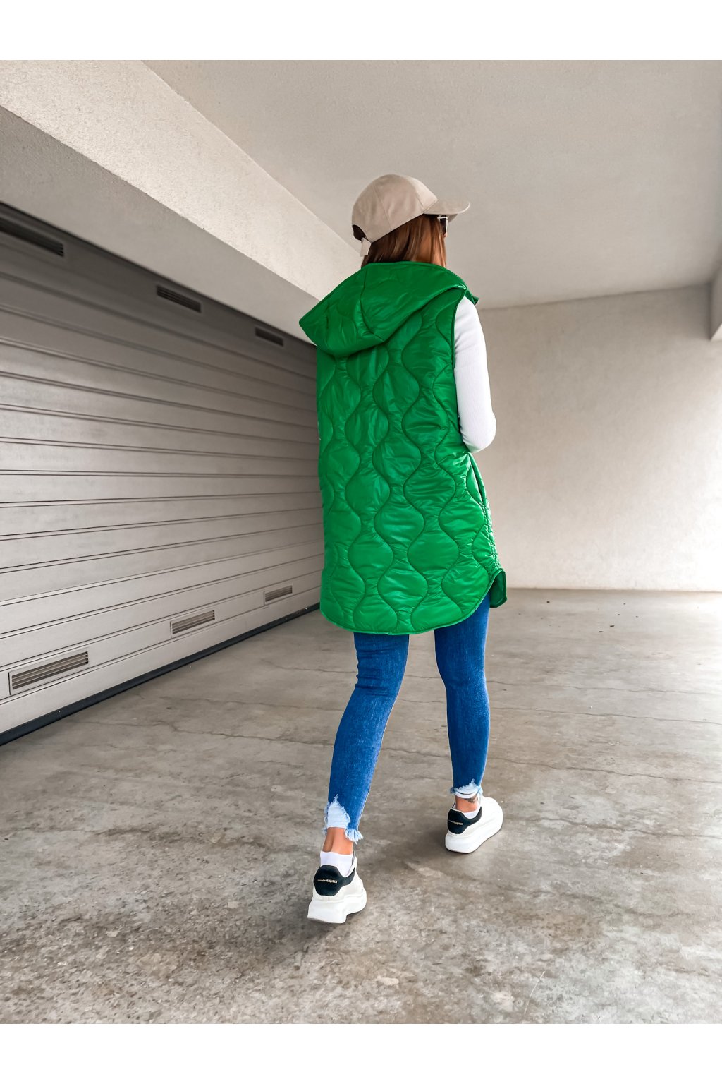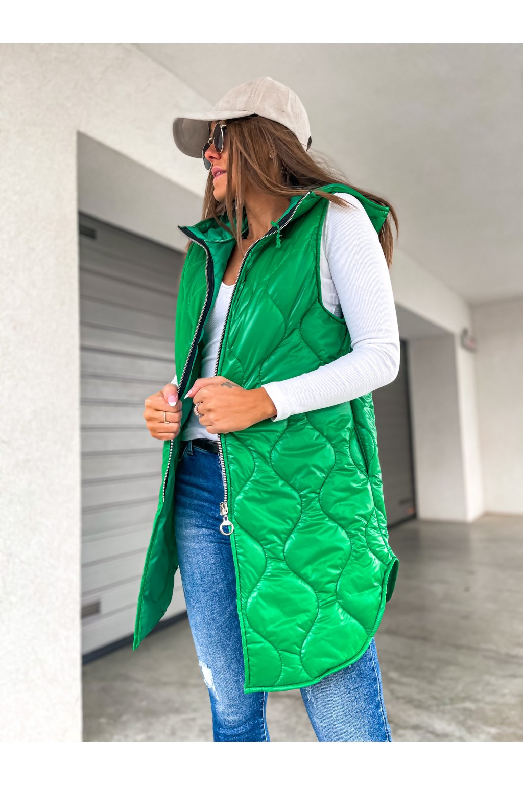 Luxusní dámská prošívaná vesta s kapucí na zip a kapsami. Stylový, originální kousek. Produkt byl vybrán pečlivě, s láskou a důrazem na vysokou kvalitu materiálu.