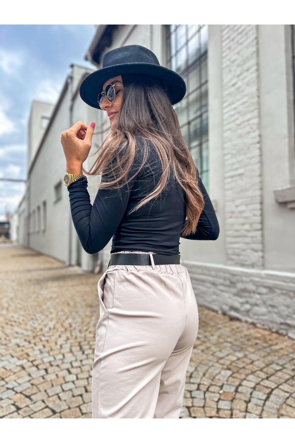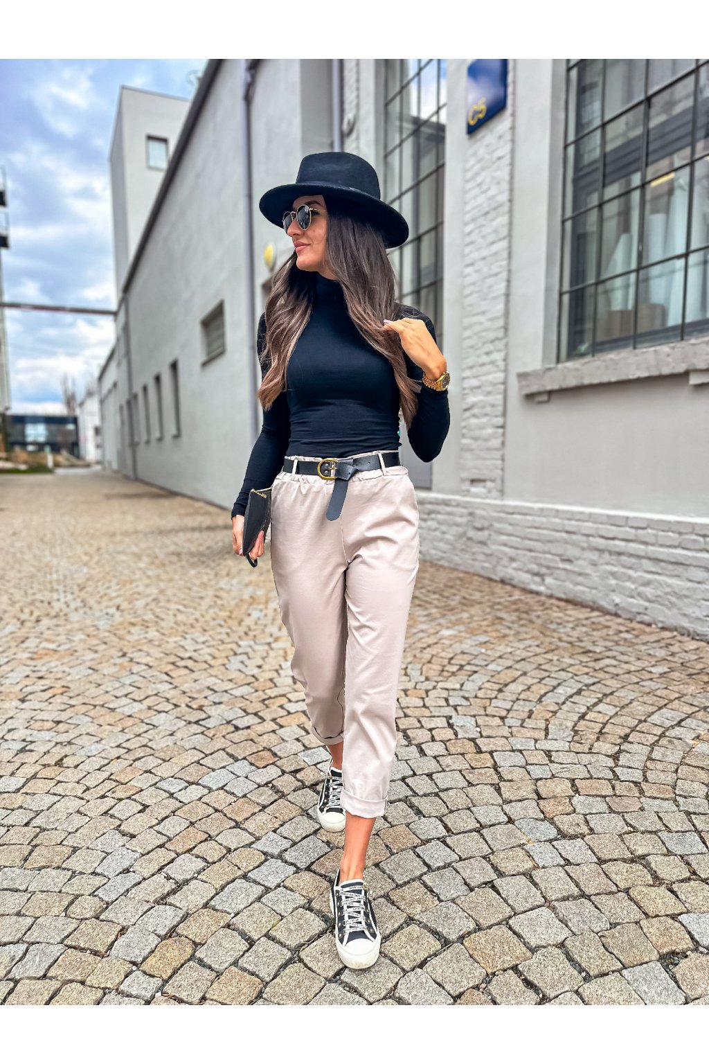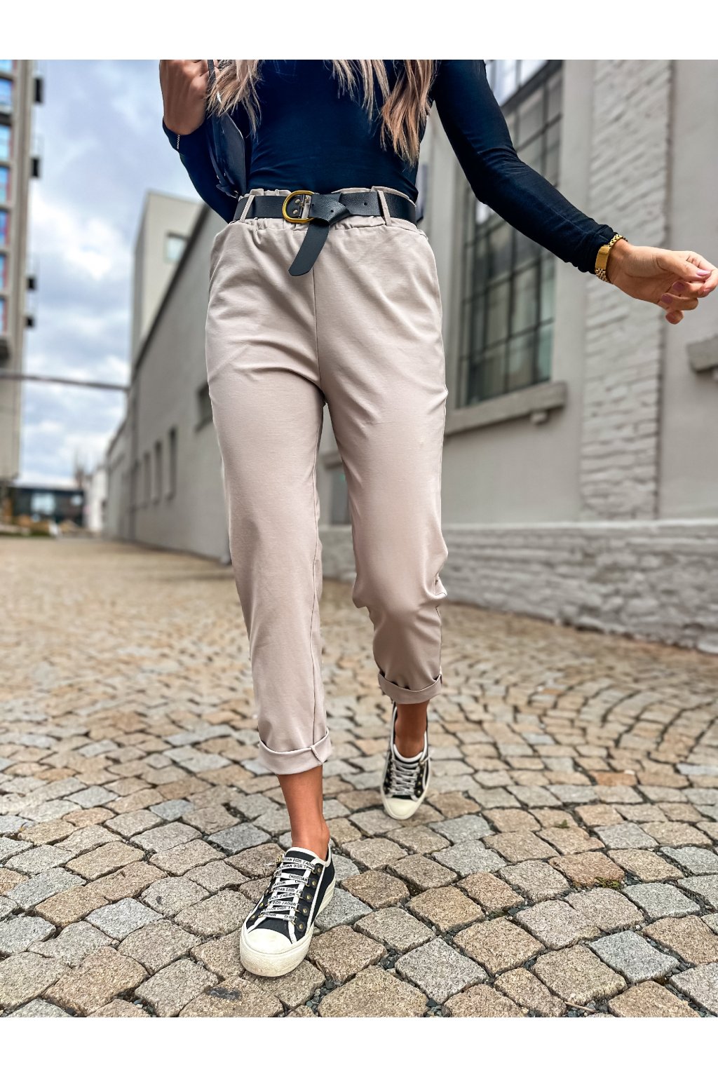 Stylové dámské kalhoty rovného střihu s páskem. Nakombinovat můžete s některým z našich tílek, triček a outfit můžete doplnit sakem.
