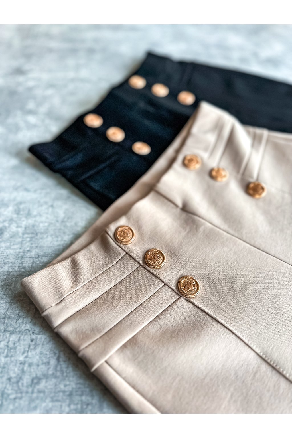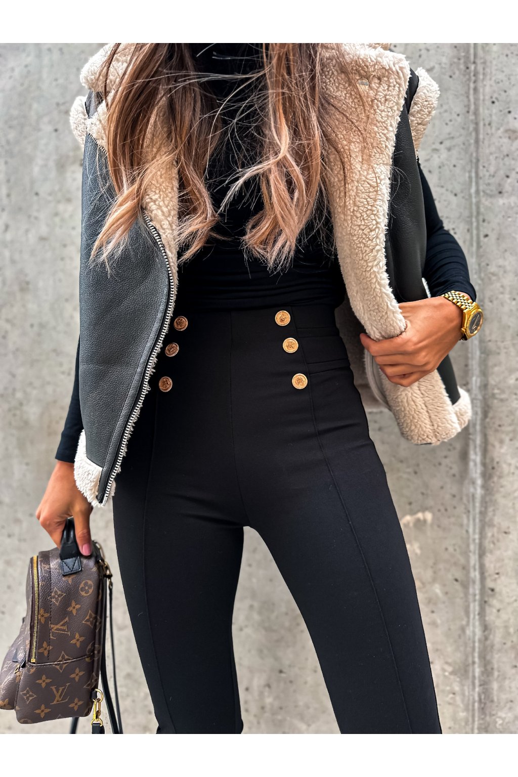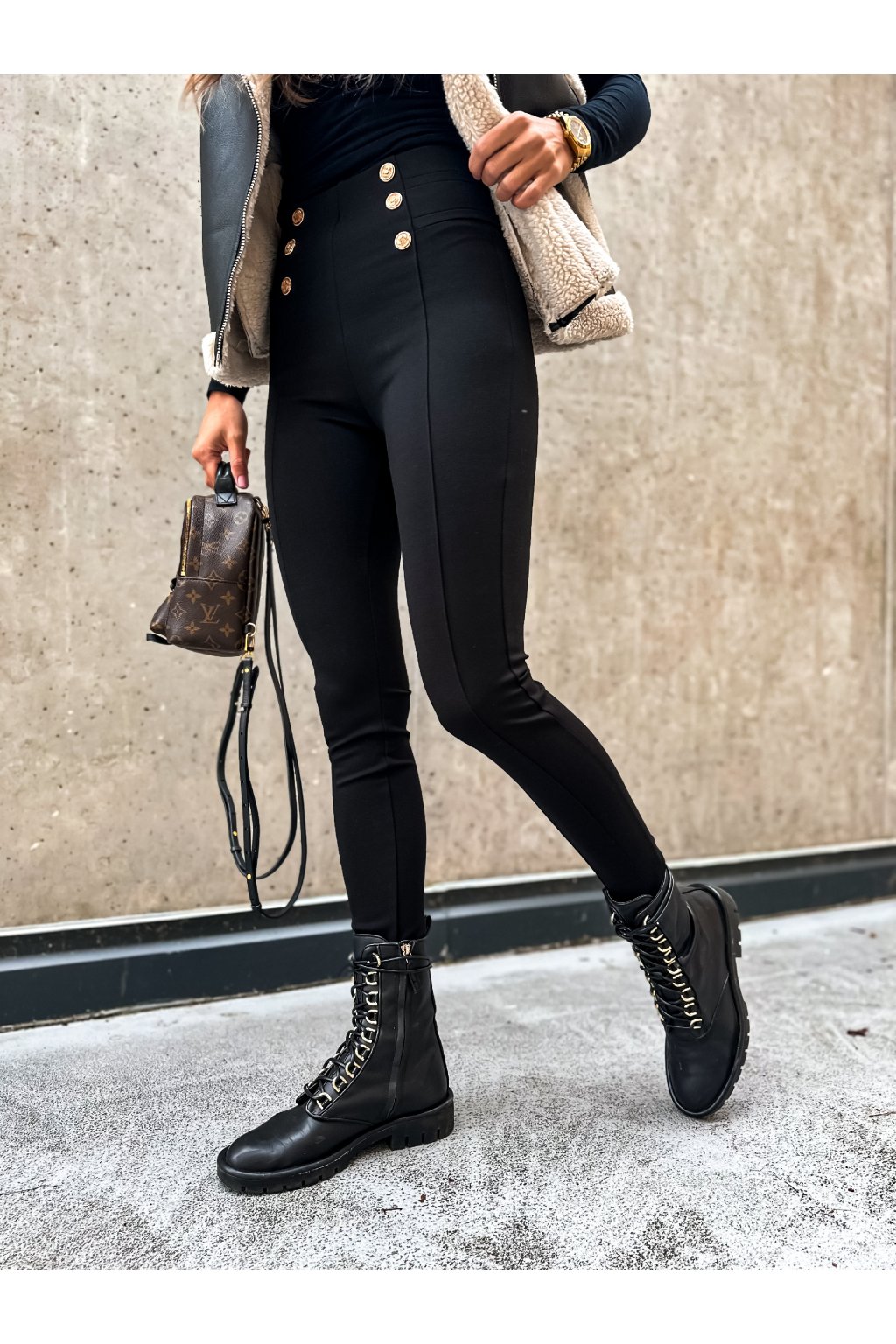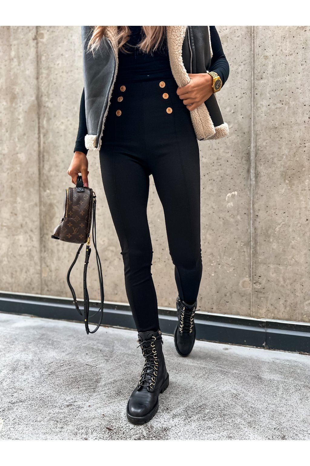 Stylové legíny s falešnými zlatými knoflíky. S vysokým pružným, ale stahujícím pasem dodávají tyto legíny moderní a dynamický vzhled, zatímco viditelné švy podél přední strany nohavic přidávají do designu odvahu a originalitu. Vysoký pružný pas nejen poskytuje pohodlný a bezchybný fit, ale také zdůrazňuje vaši postavu. Bez kapes.