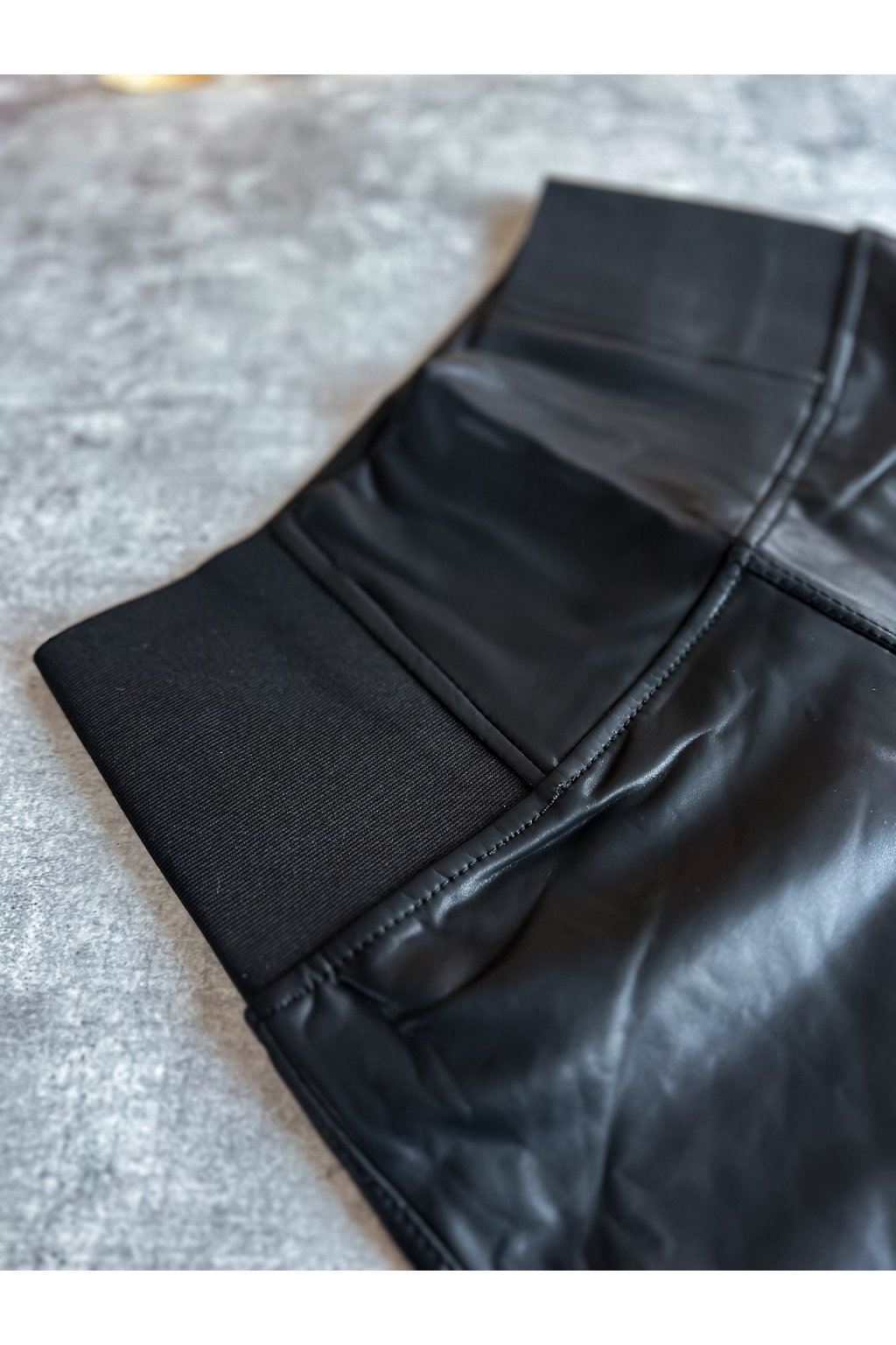 Stylové lesklé stahující legíny s vysokým pasem. Tyto legíny dokonale tvarují postavu a stahují pas. Lesklý materiál přidává do outfitu sofistikovaný nádech a přitahuje pozornost. Legíny nemají kapsy.