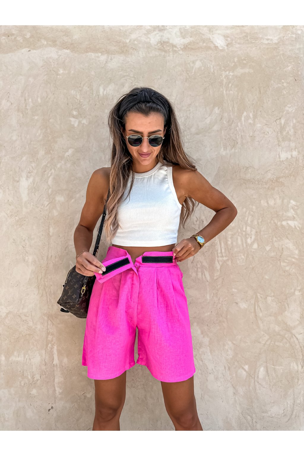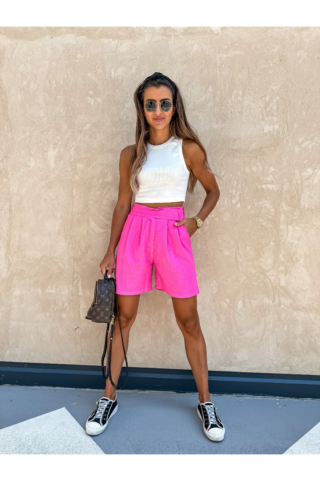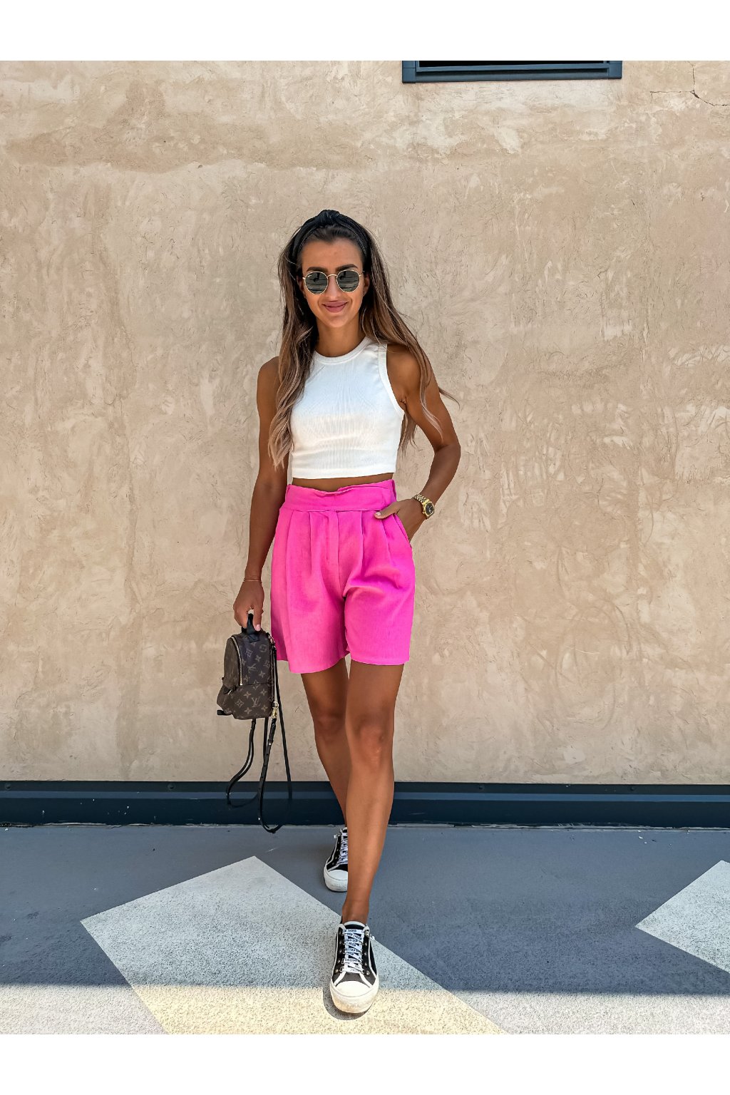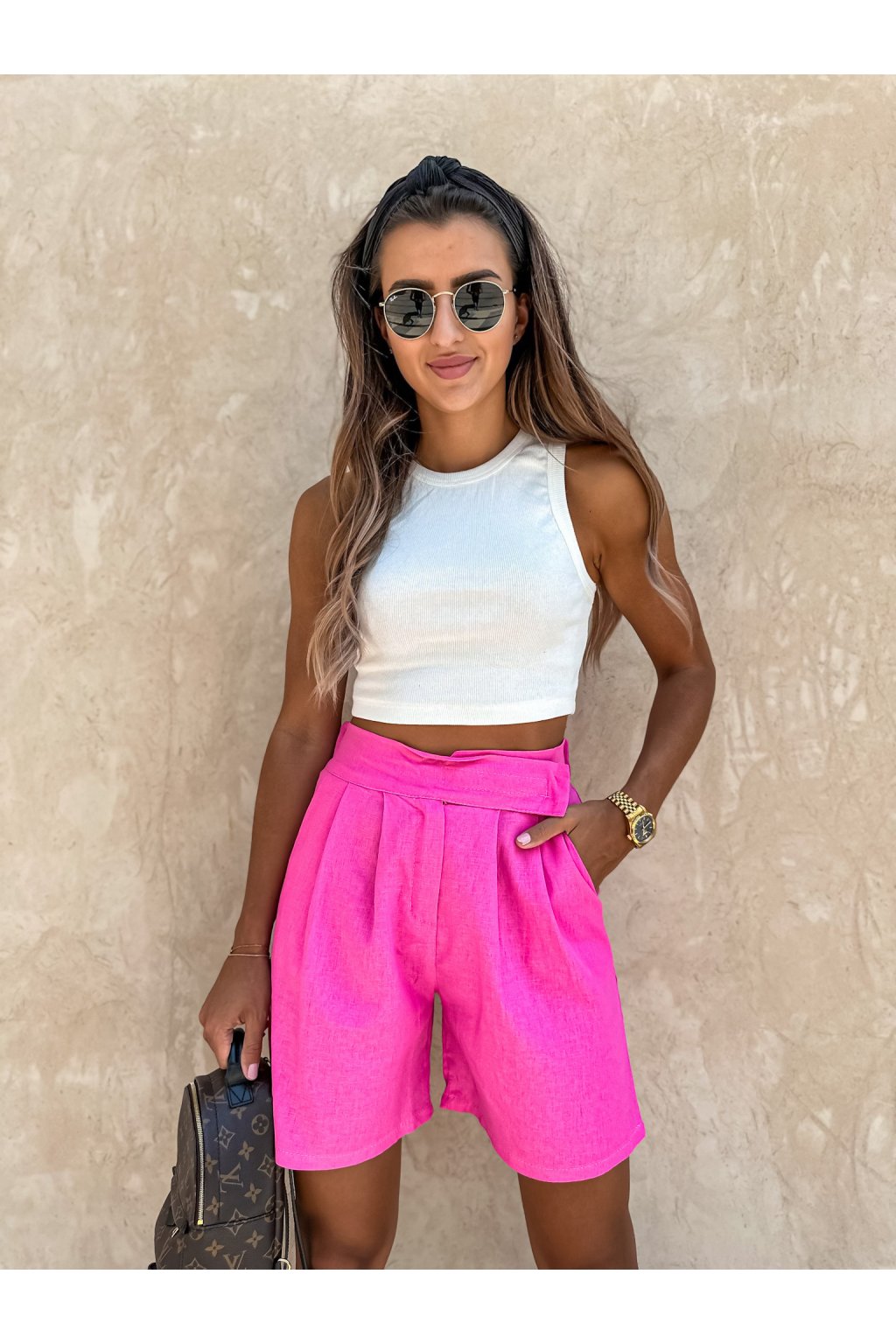 Stylové dámské lněné kraťasy na suchý zip. V pase jsou dost pružné a jsou velmi příjemné na každodenní nošení. Jsou do pasu.