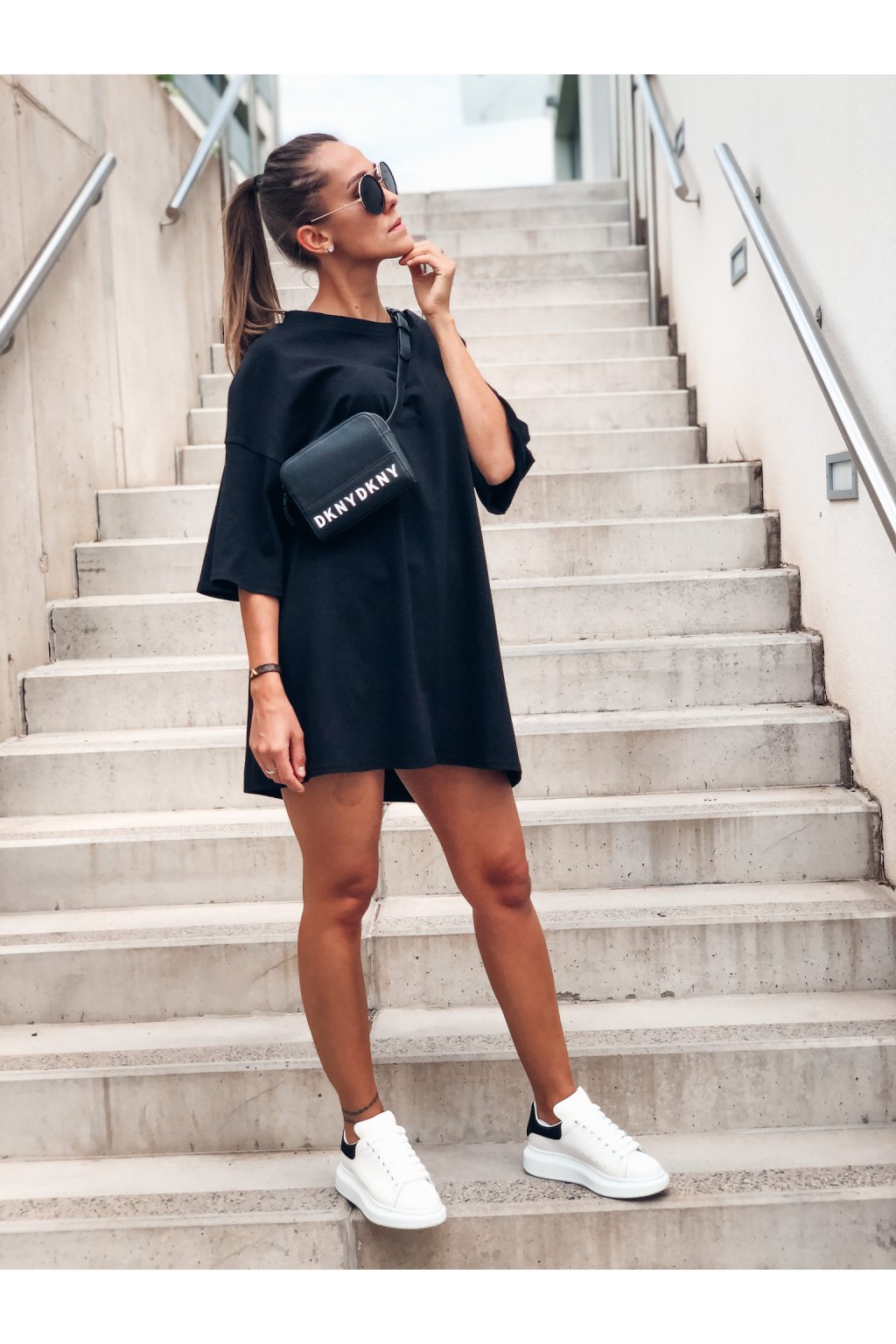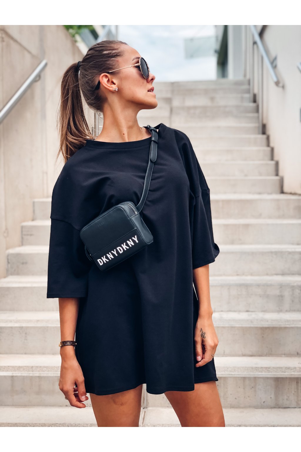 Stylové oversize šaty v barvě Black. Jako šaty doporučujeme nosit slečnám do 170/1 cm. Je možné nosit i jako oversize tričko, třeba ke kraťáskům.