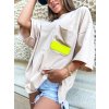 Stylové dámské oversize tričko s rozparky po obou stranách, kapsou a nášivkou. Nakombinovat můžete s kraťasemi s naší nabídky. Tričko vypadá skvěle i k boyfriend nebo klasickým riflím.