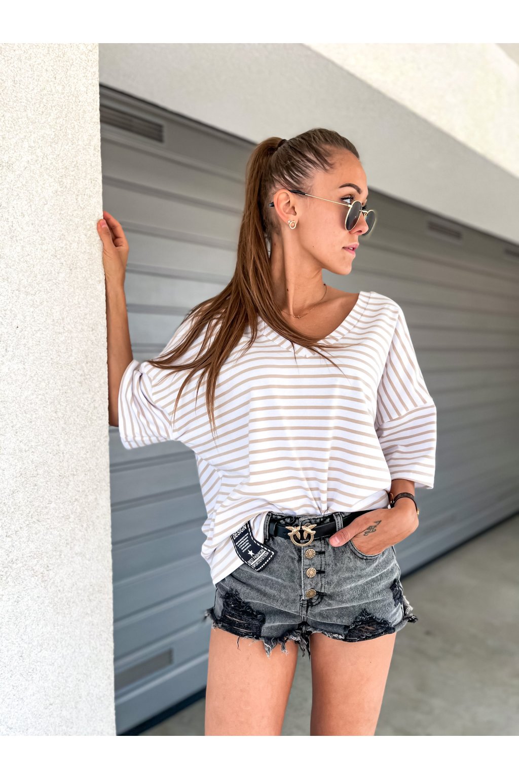 Stylové oversize tričko V Neck s nášivkami a lehce odhalenými zády. Stylový kousek, který je ideální na jaro, léto. Sladit můžete s klasickými i boyfriend riflemi nebo kraťásky.