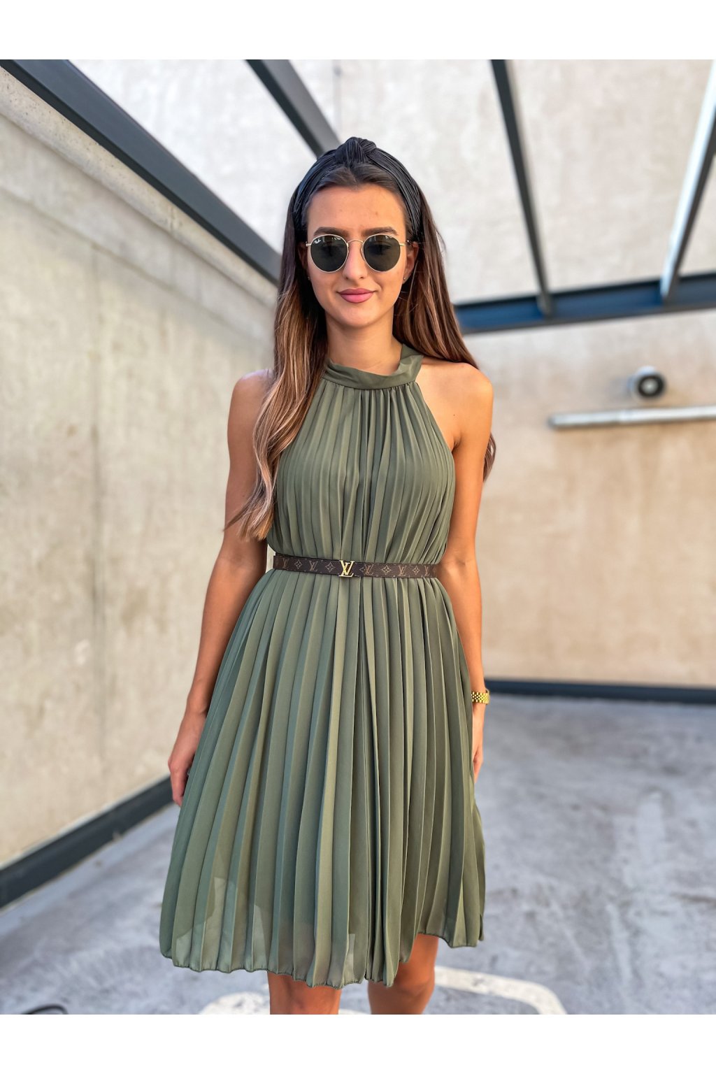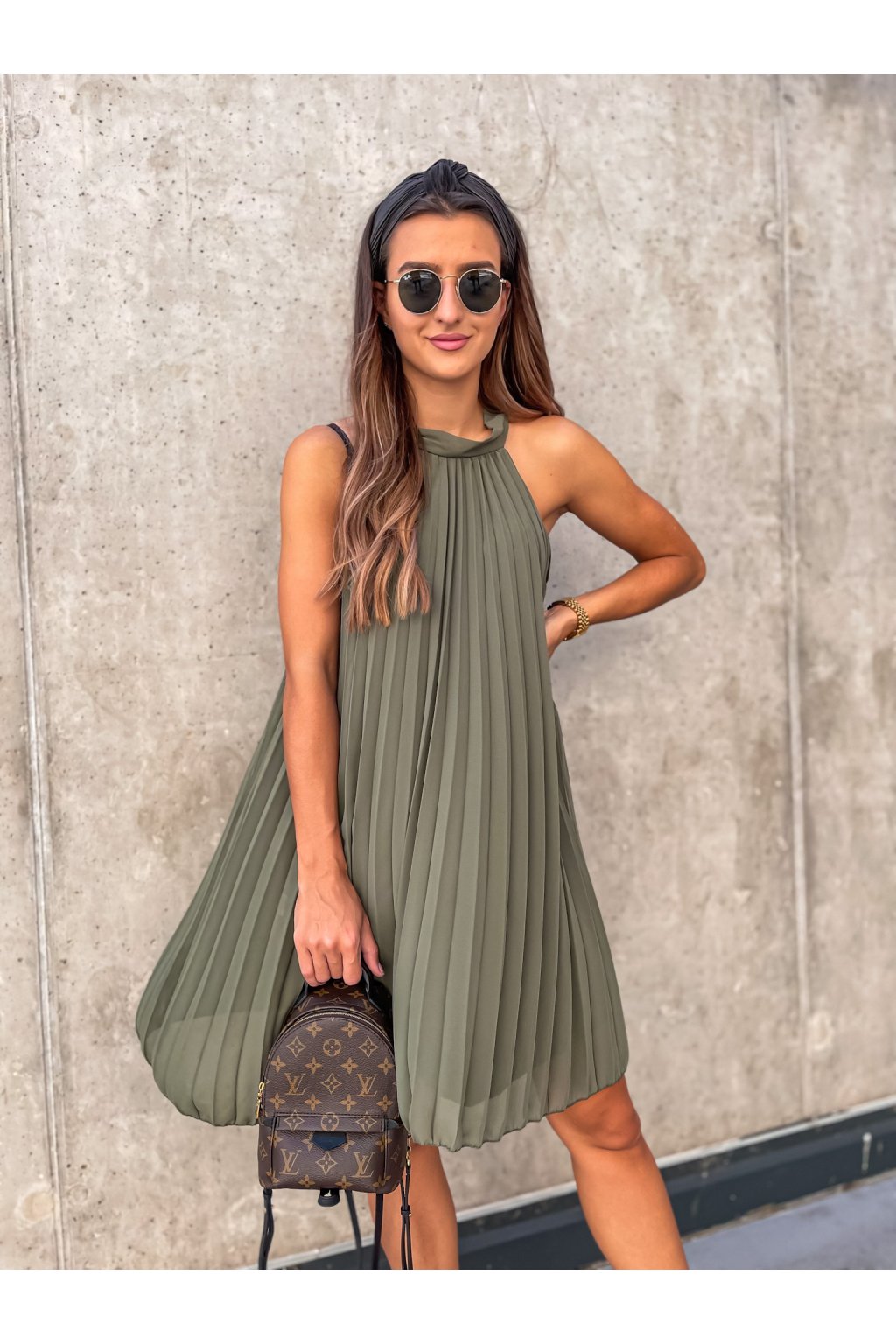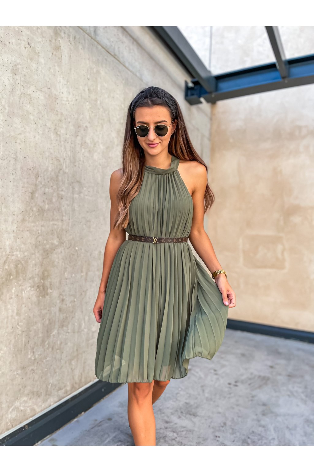 Dámské plísované šaty Short Astana Khaki