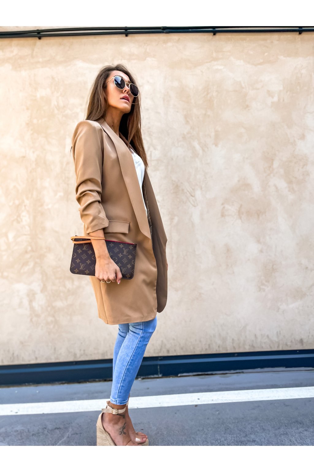 Stylové prodloužené dámské sako se 3/4 rukávy a nařasením na rukávech. Tento luxusní kousek lze kombinovat na mnoho způsobů, jak na sportovno, tak na elegantní styl a díky jeho materiálu je jeho využité celoroční. Vypadá skvěle jak k riflím, elegantním kalhotům, kraťáskům, tak jako přehoz na šaty. Za nás opravdu velmi povedený kousek.