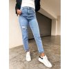 Stylové dámské trhané rifle s vysokým pasem. Zkombinovat můžete s našimi tričkami, svetry, topy. Rifle jsou lehce pružné.