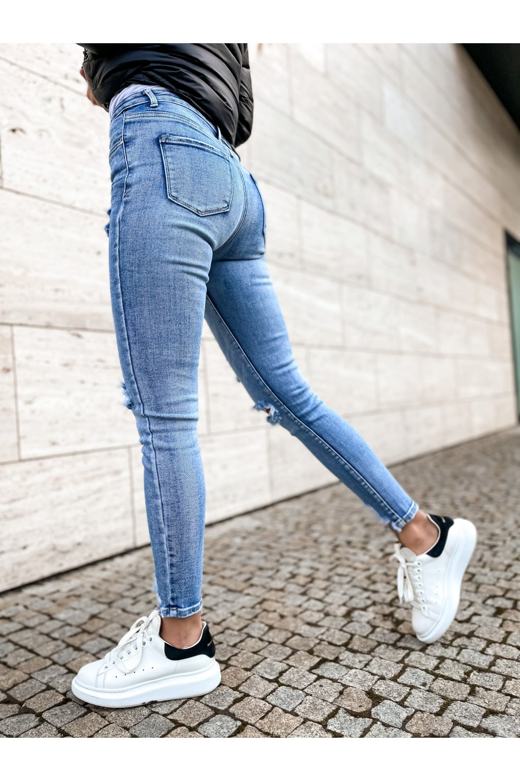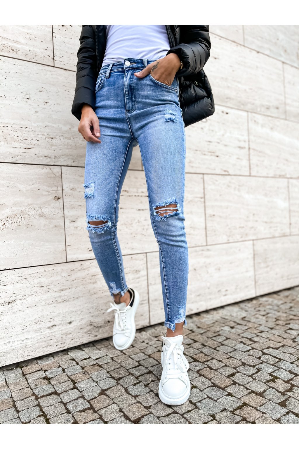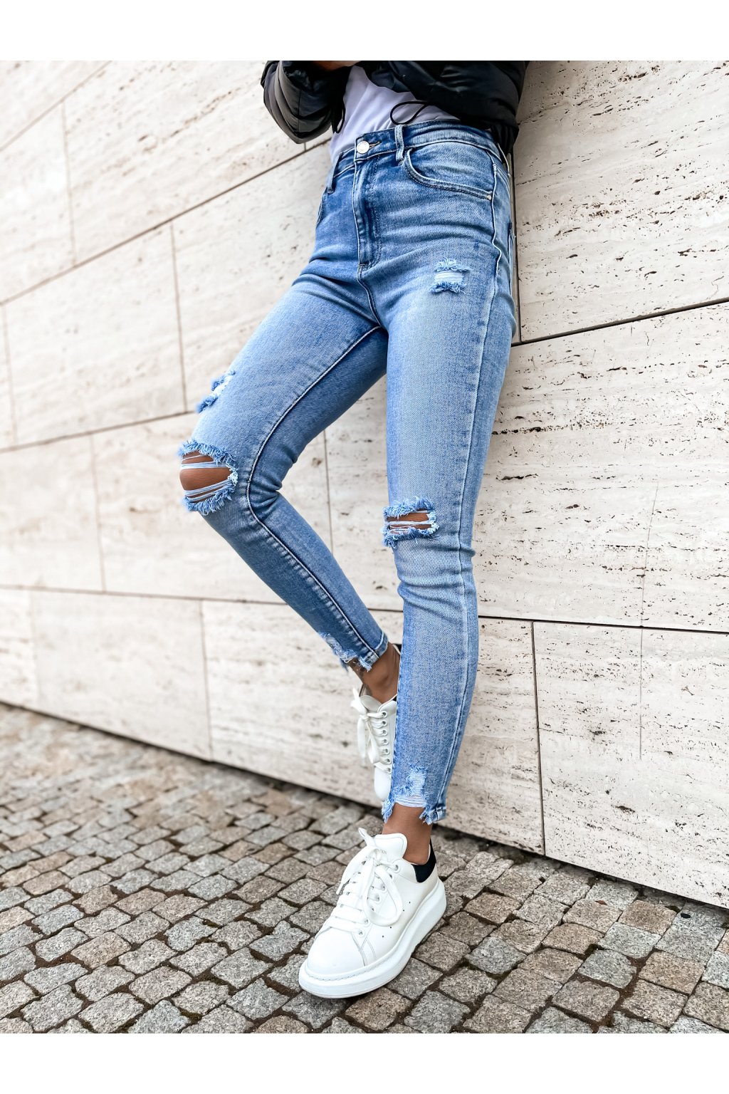 Stylové dámské rifle s vysokým pasem. Rifle mají skvělé zbarevní a trhání dole. Zkombinovat můžete s našimi tričkami, svetry, topy. Rifle jsou pružné a sedí podle klasického číslování.