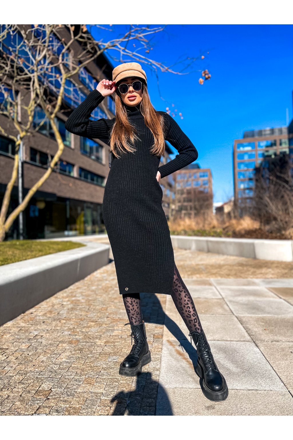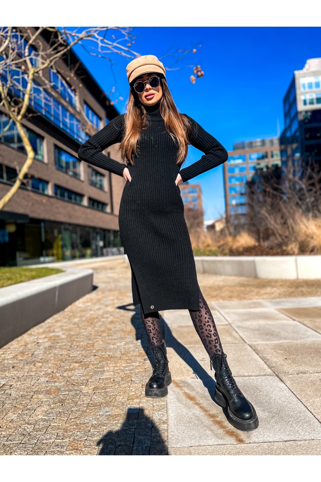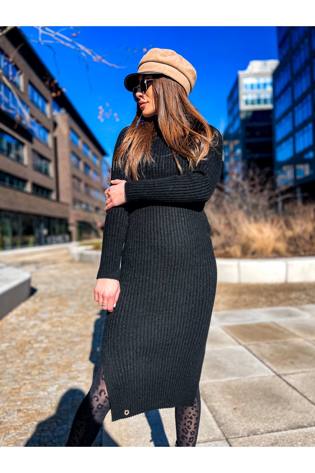 Luxusní rolákové vzorované šaty s rozparky po stranách. Skvělý kousek jak k teniskám, tak ke kozačkám nebo biker botám a kožené bundě. Na pravé straně je malý doplněk. Šaty jsou velmi pružné.