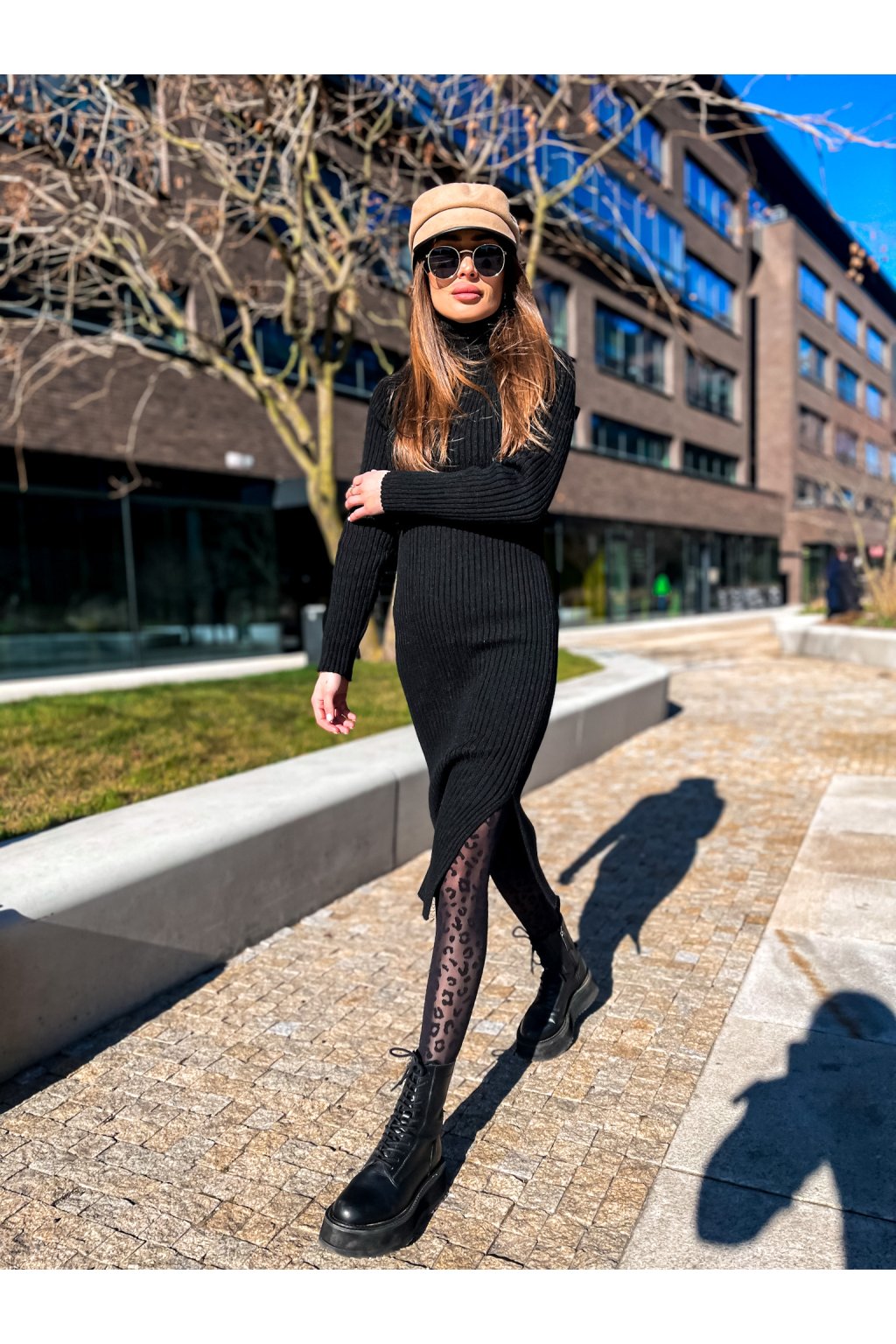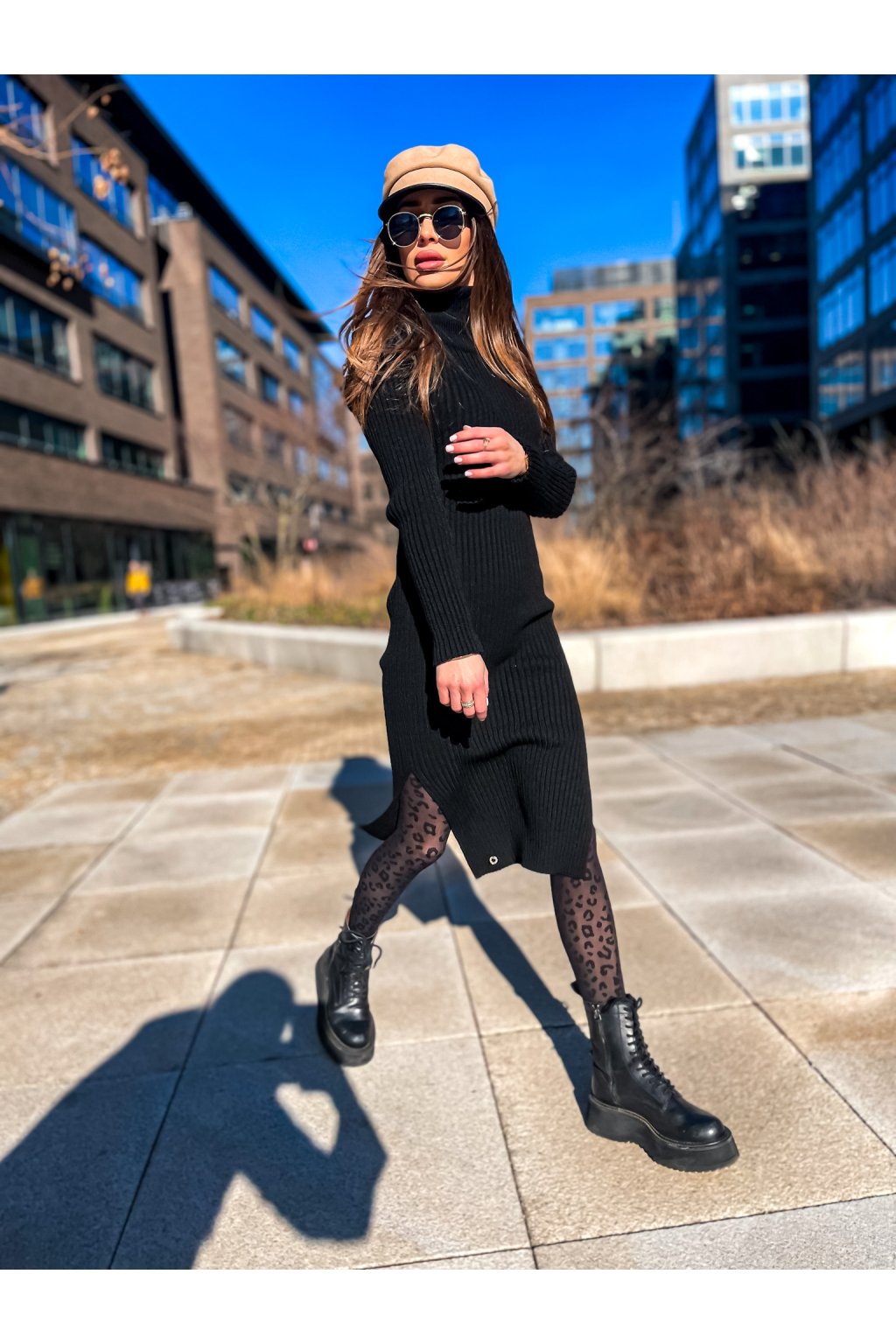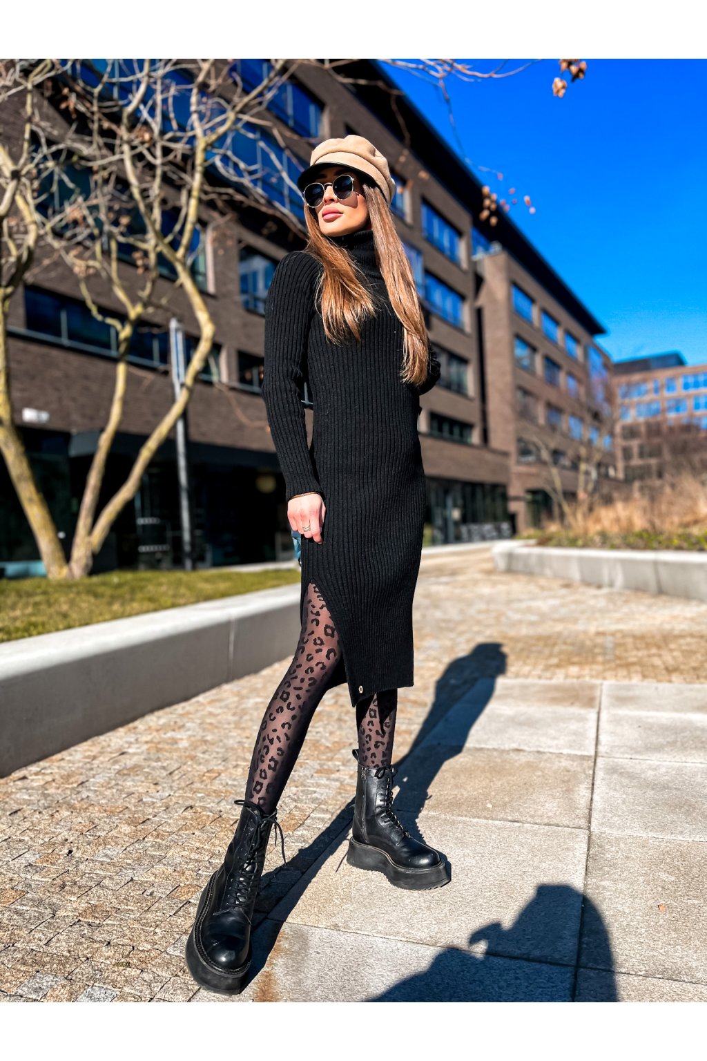 Luxusní rolákové vzorované šaty s rozparky po stranách. Skvělý kousek jak k teniskám, tak ke kozačkám nebo biker botám a kožené bundě. Na pravé straně je malý doplněk. Šaty jsou velmi pružné.