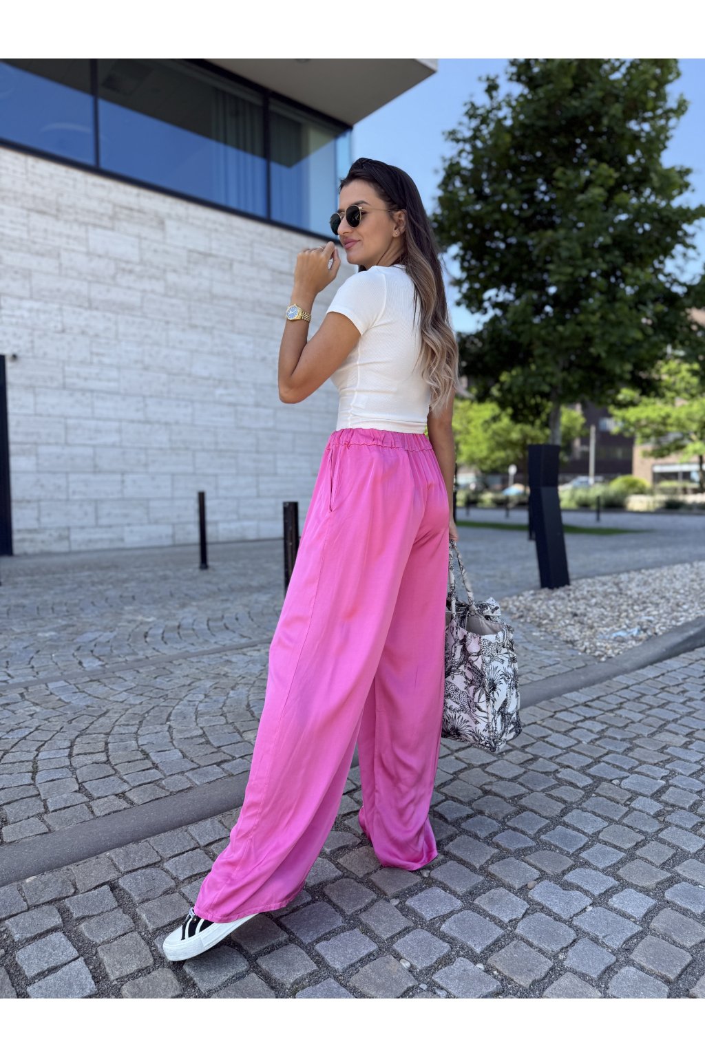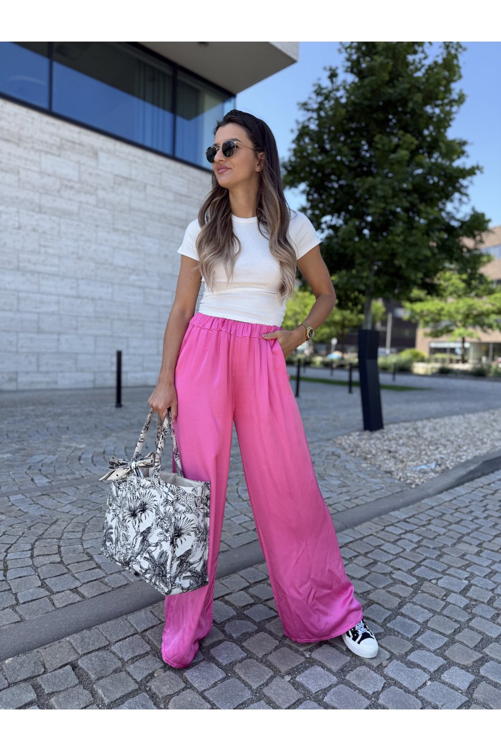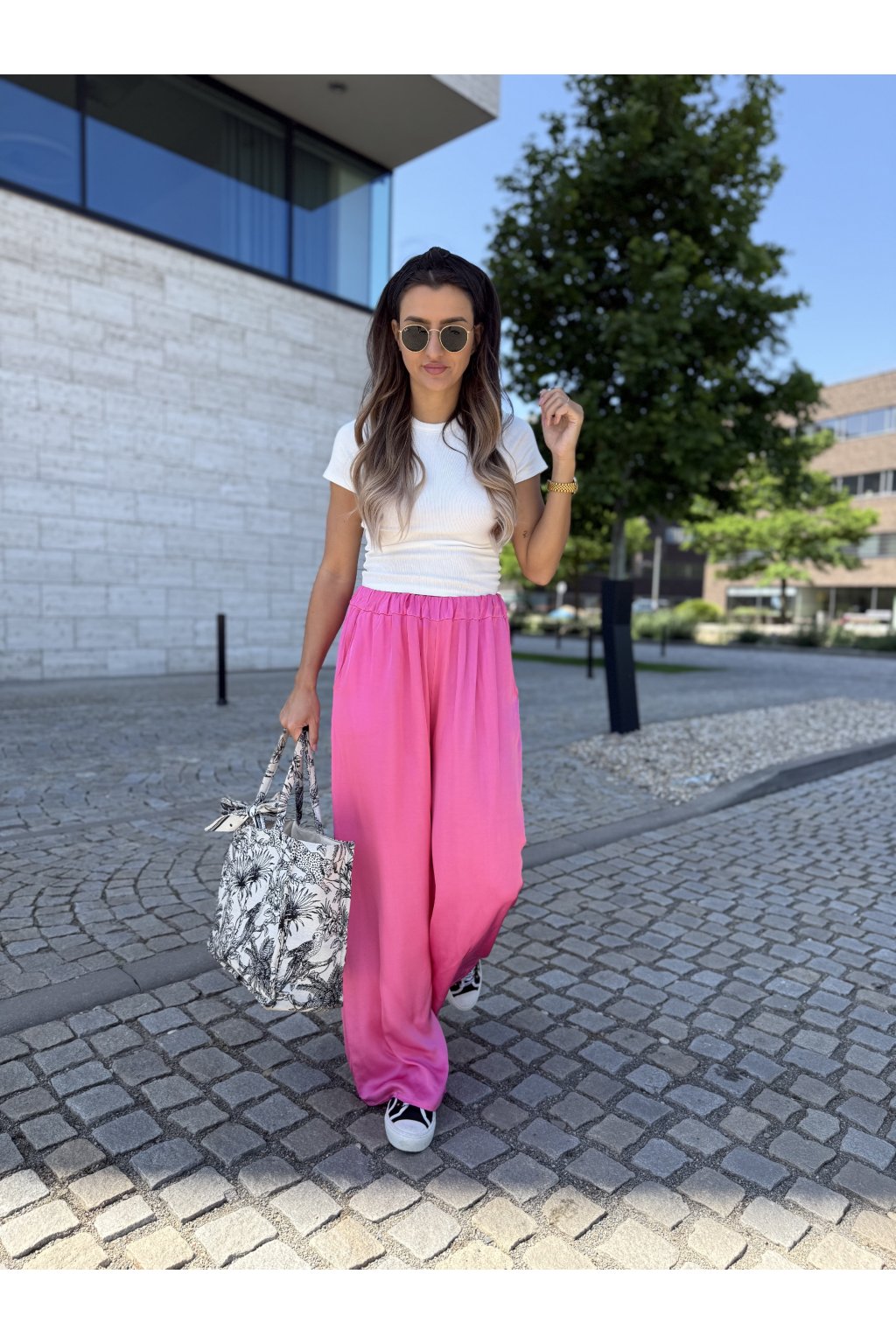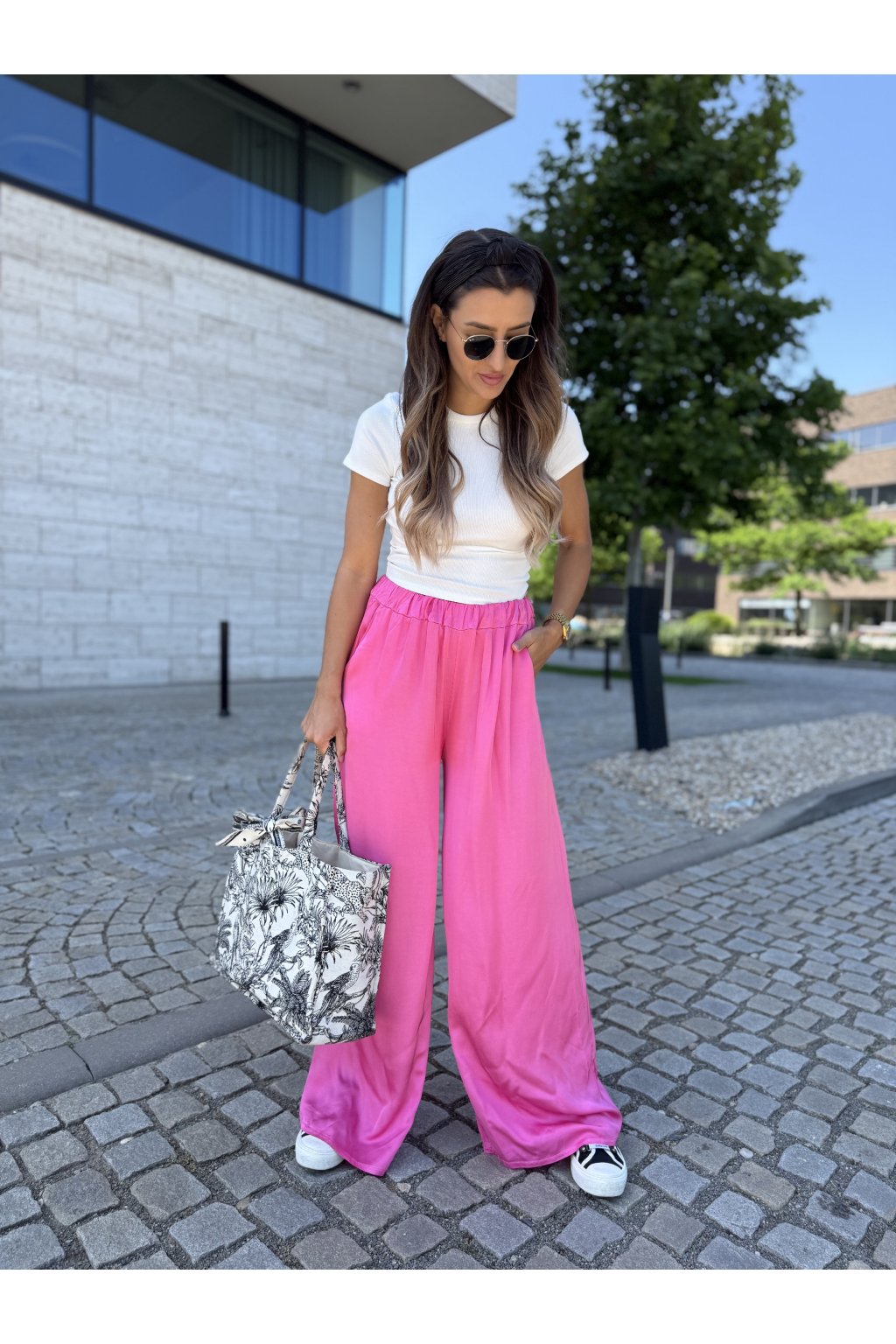 Luxusní dámské široké kalhoty s gumou v pase. Nakombinujte například s našimi cropped topy nebo braletkami a vytvořte si tak pohodlný, svěží a stylový letní outfit.