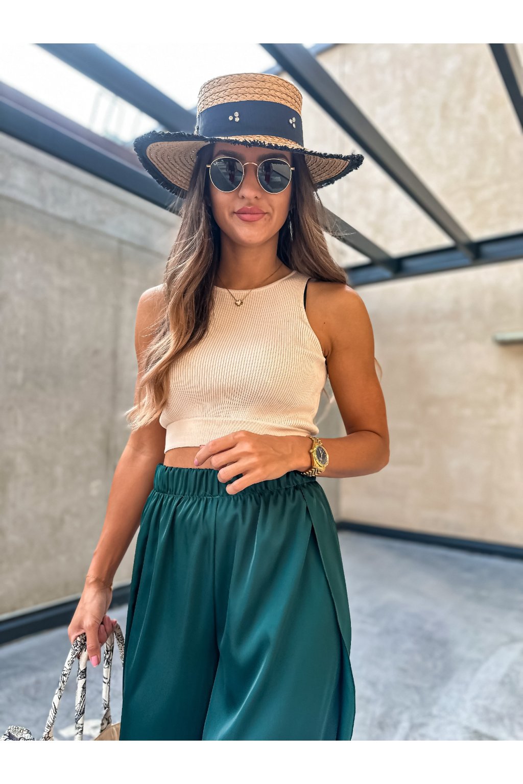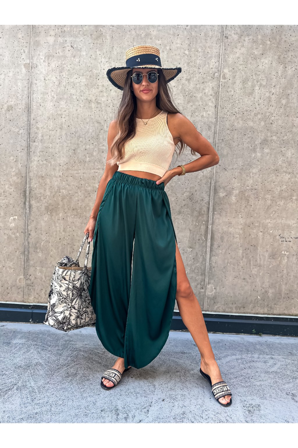 Luxusní dámské saténové kalhoty s rozparkem. Nakombinujte například s našimi cropped topy nebo braletkami a vytvořte si tak pohodlný, svěží a stylový letní outfit.