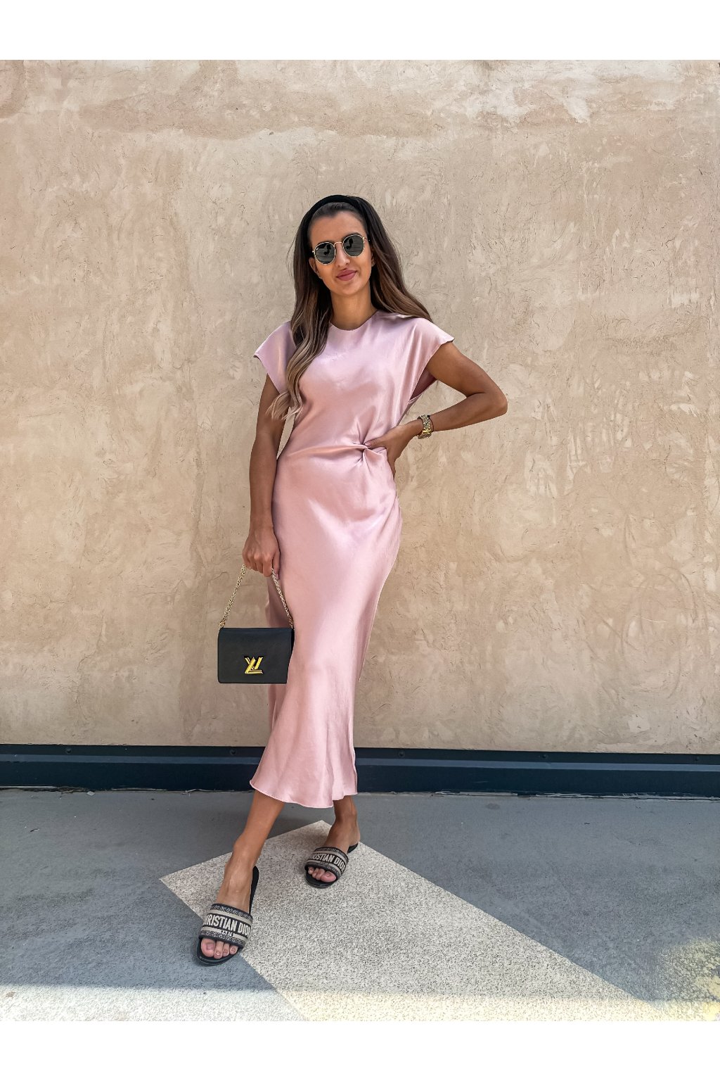 Luxusní ala saténové šaty s překřížením na hrudi. Šaty jsou vyrobeny z lehkého příjemného materiálu. Za nás naprosto top kousek.