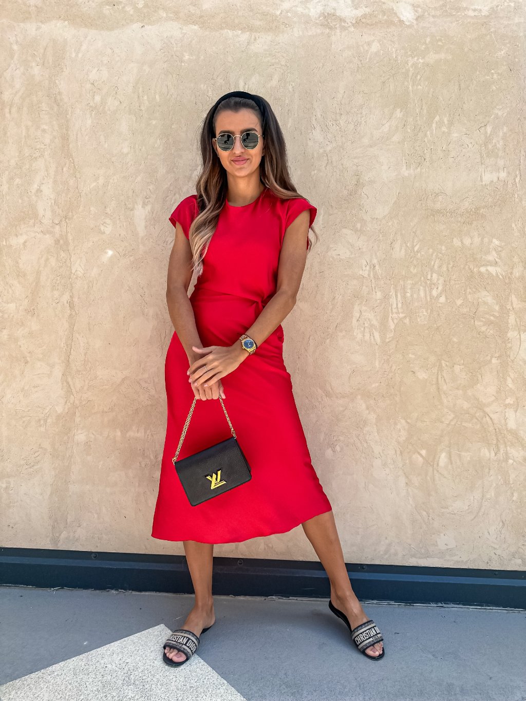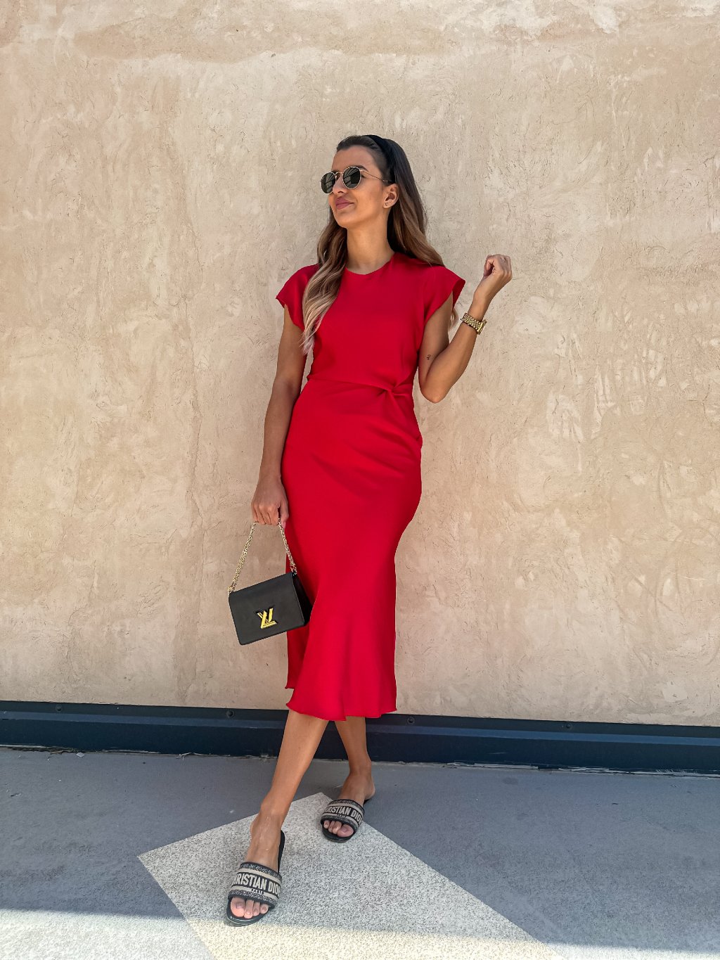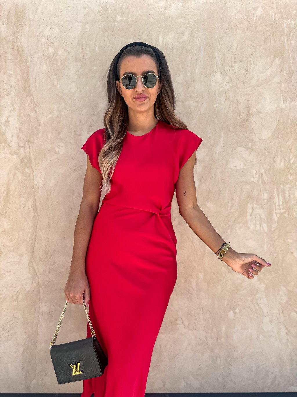 Červené saténové midi šaty s uzlem Red