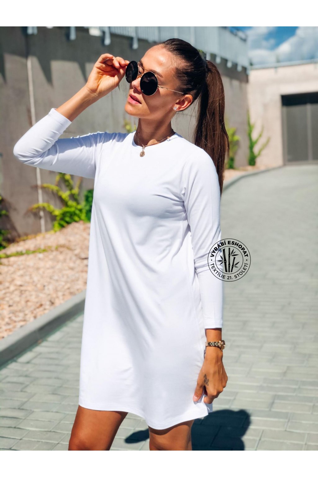 Luxusní dámské šaty s dlouhým rukávem z bambusového úpletu šitý pod značkou ESHOPAT. Nejen odborníci a známí návrháři z oblasti oděvního průmyslu považují bambusovou textilii za jeden z nejslibnějších materiálů budoucnosti.