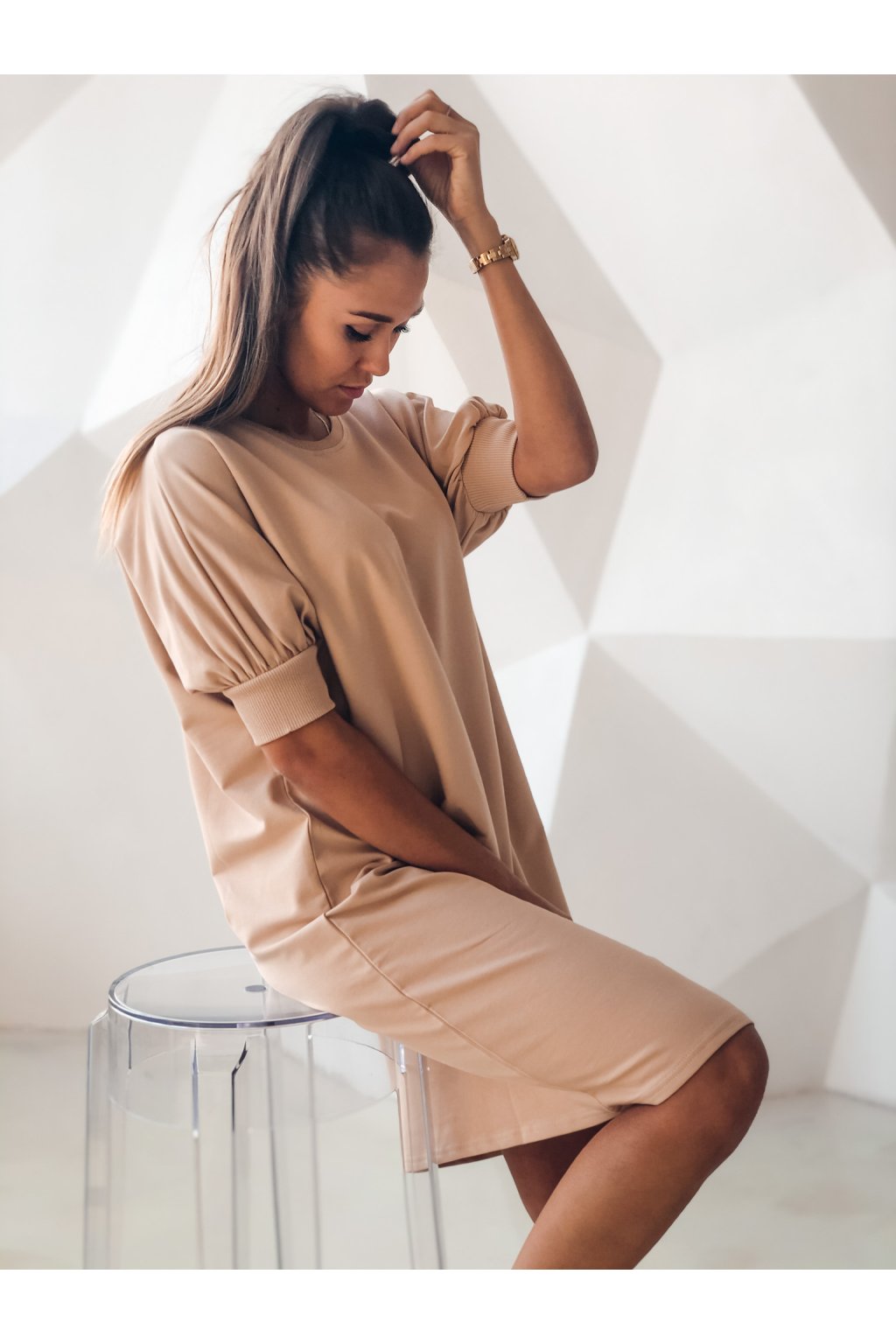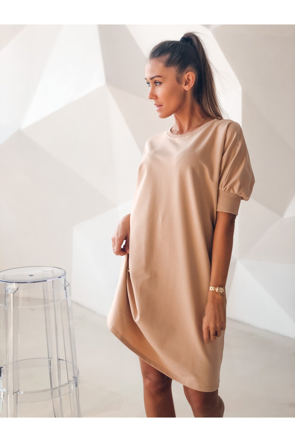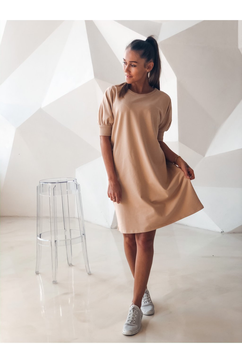 Stylové šaty Basic a lehce nabíranými rukávy. Ideální nosit na sportovnější styl, k teniskám, riflové bundě. Velikost UNI, sedí na XS-L. Doporučujeme spíše vyšším slečnám.