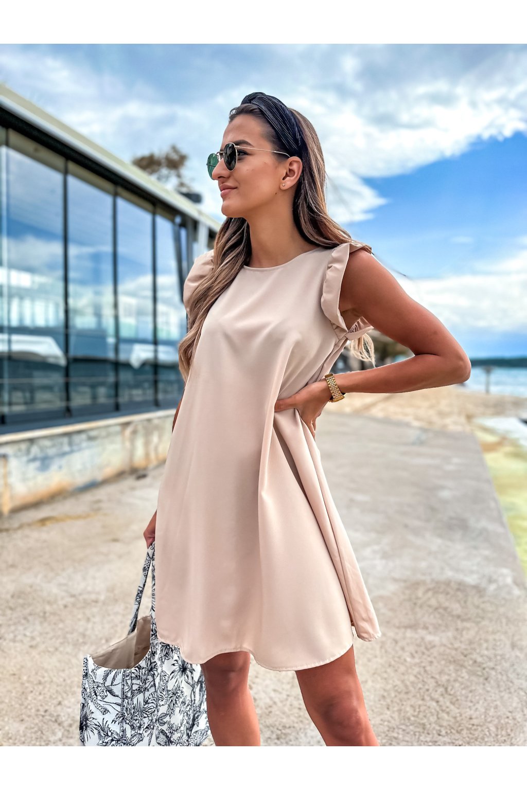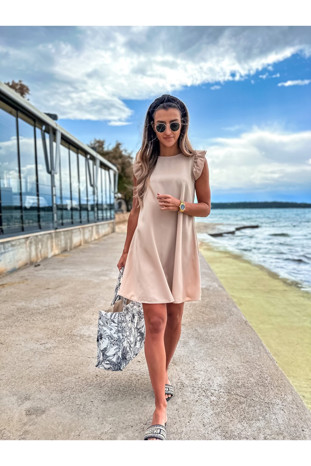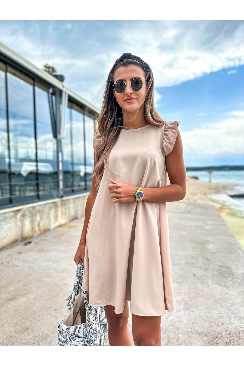 Luxusní dámské šaty střihem lehce do A s křidélkovými rukávy. Vzadu na zapínání na knoflík. Nádherné, velmi příjemné šaty z kvalitního materiálu.