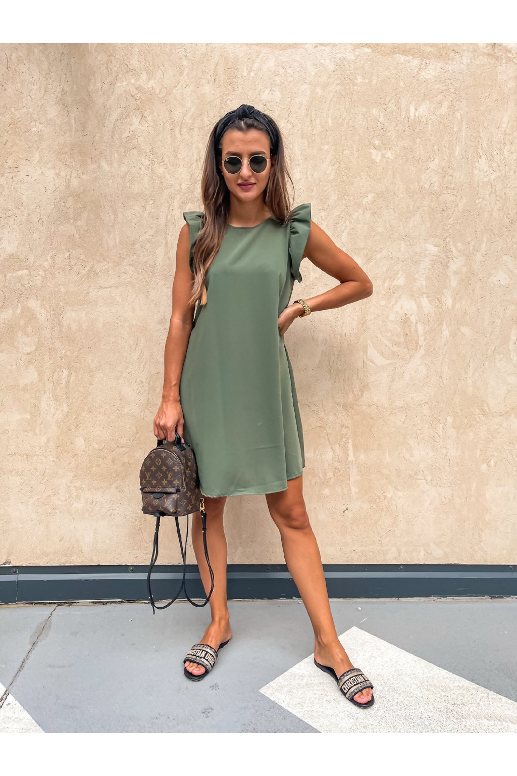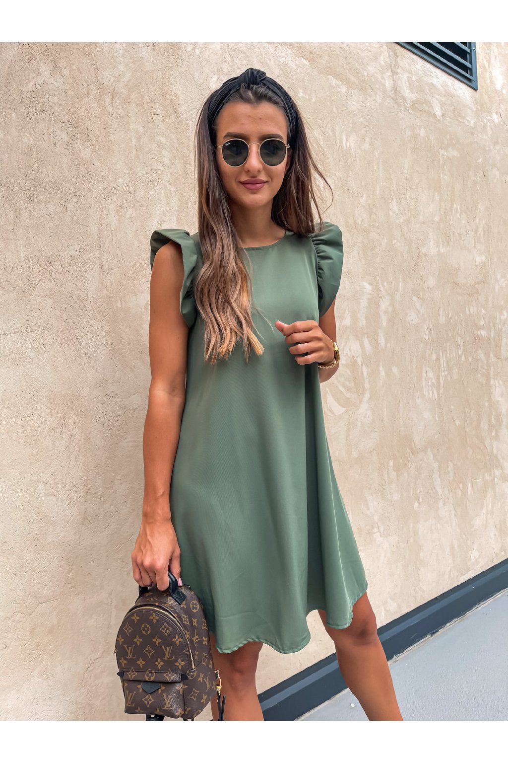 Luxusní dámské šaty střihem lehce do A s křidélkovými rukávy. Vzadu na zapínání na knoflík. Nádherné, velmi příjemné šaty z kvalitního materiálu.