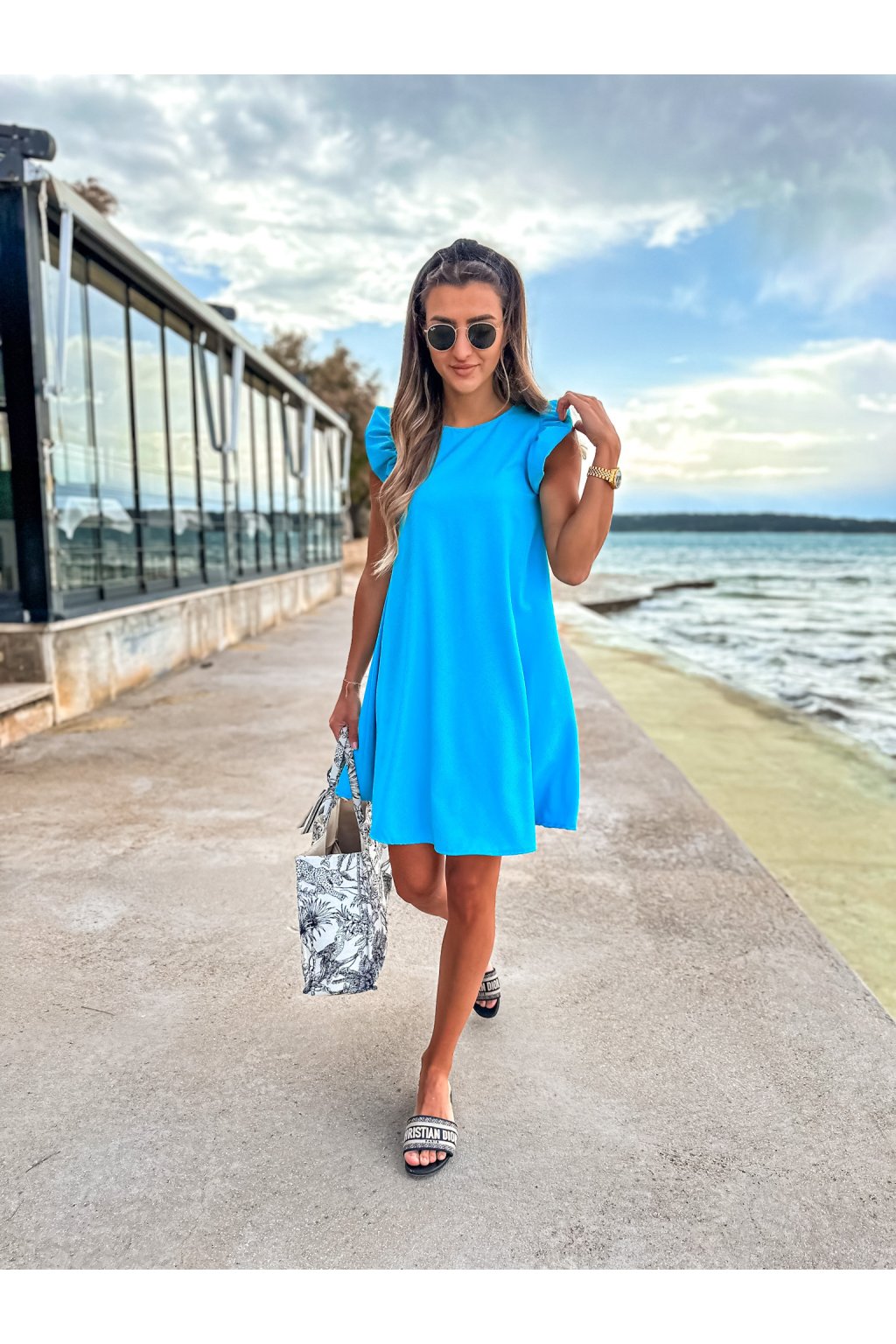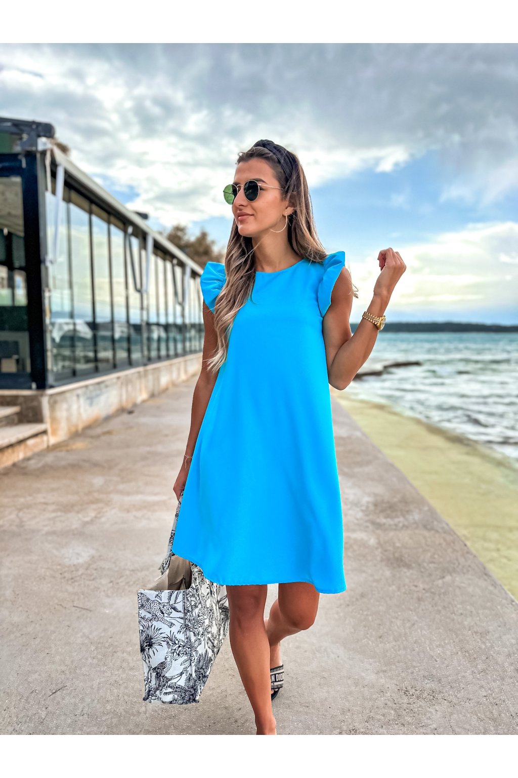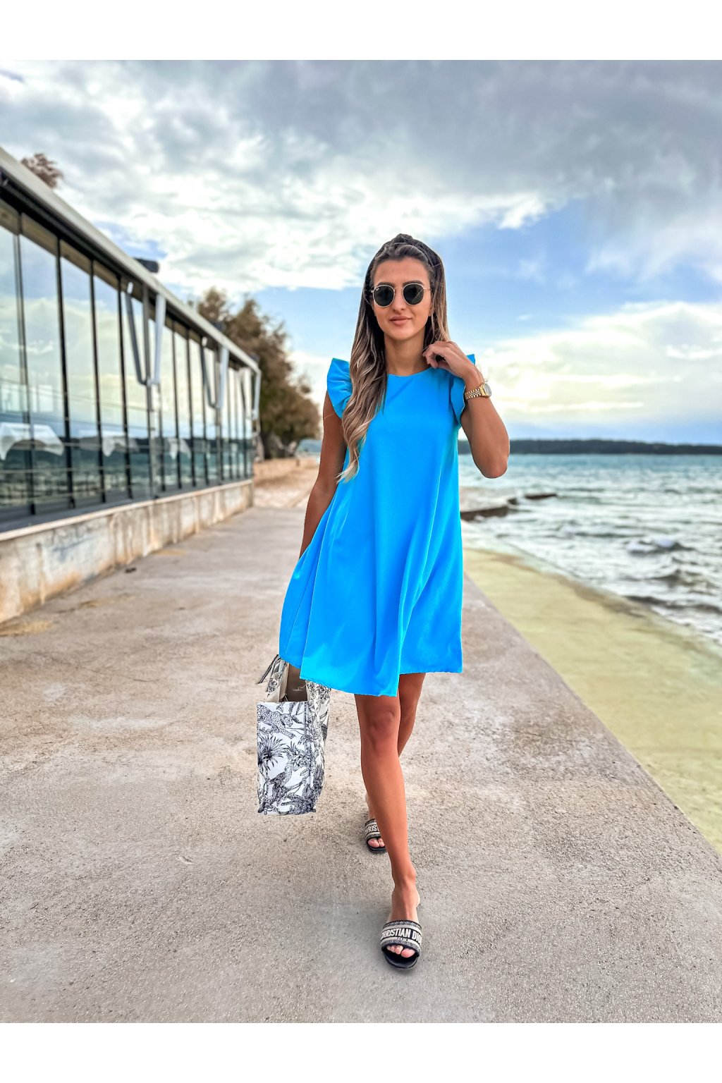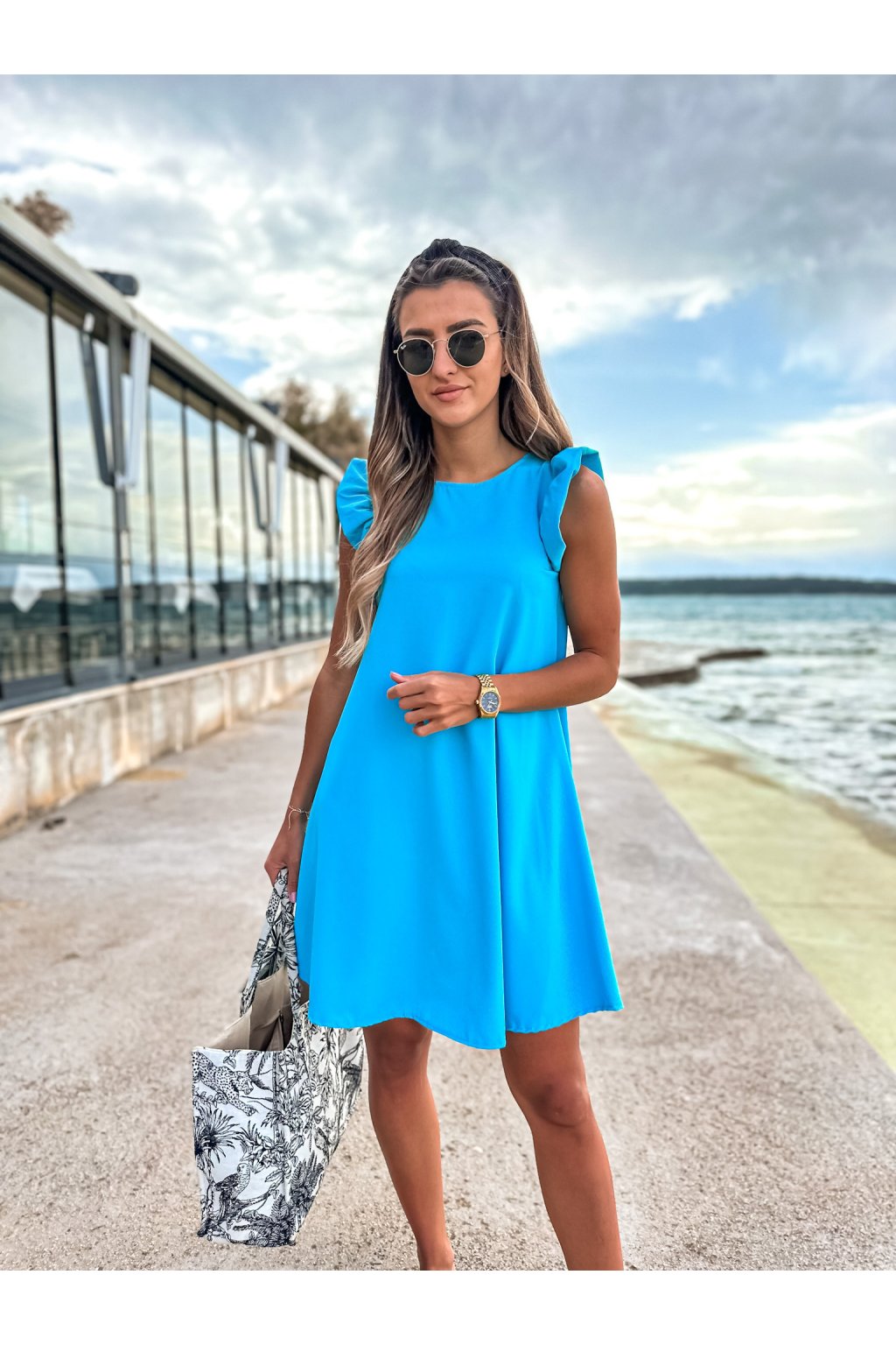 Luxusní dámské šaty střihem lehce do A s křidélkovými rukávy. Vzadu na zapínání na knoflík. Nádherné, velmi příjemné šaty z kvalitního materiálu.