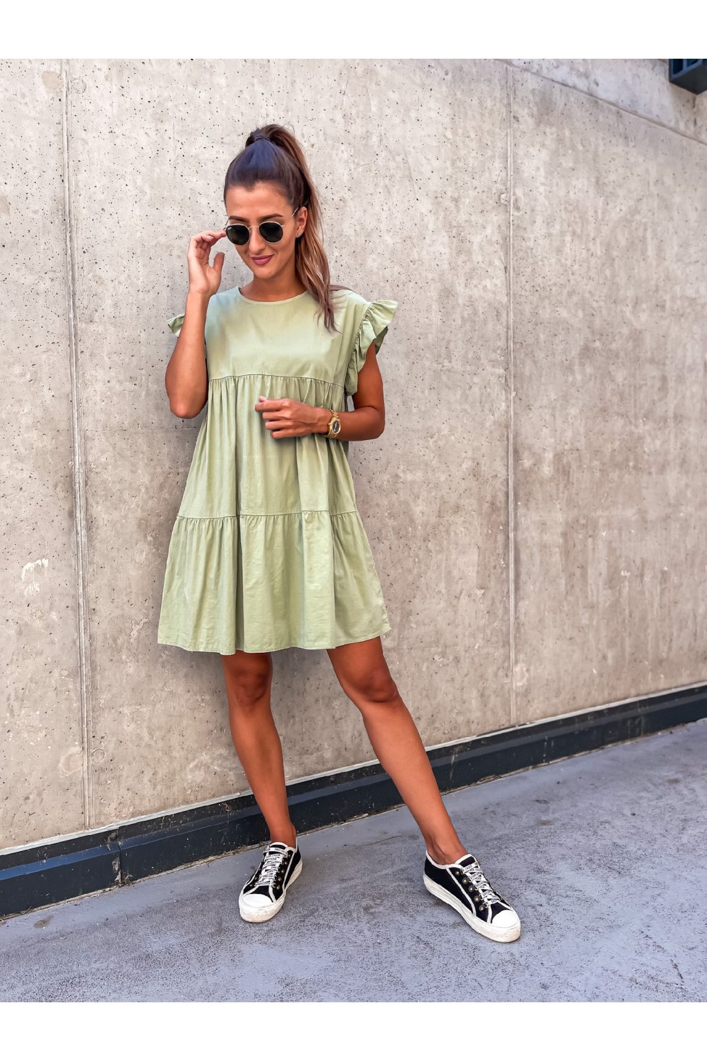 Stylové dámské šaty s lehce volánkovými rukávy. Střih do A sedí každé postavě. Šaty jsou vzdušné, lehké a je možné je nakombinovat i na jaře a na podzim ke kožené nebo riflové bundě a vytvořit si tak pohodlný a stylový outfit. Hodí se jak k teniskám, tak pantoflím a na podzim k biker botám.