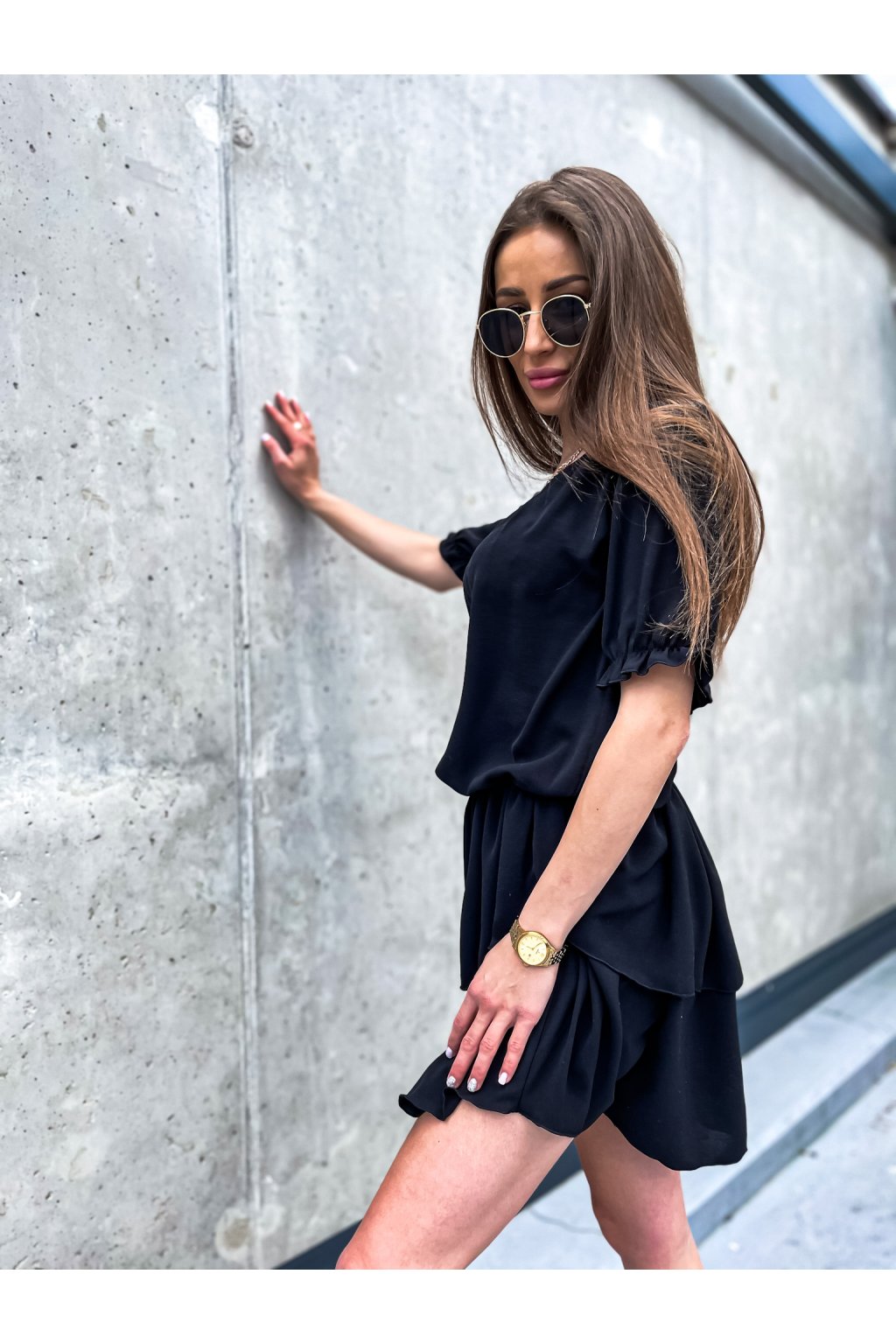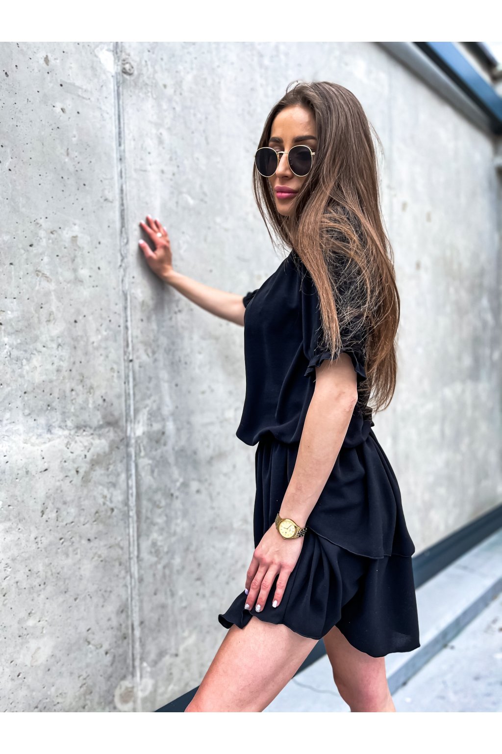 Luxusní šaty Lise volnějšího střihu s gumou v pase a krátkým rukávem. Šaty mají jemný náznak výstřihu do V. Vzdušný a velmi příjemný materiál.