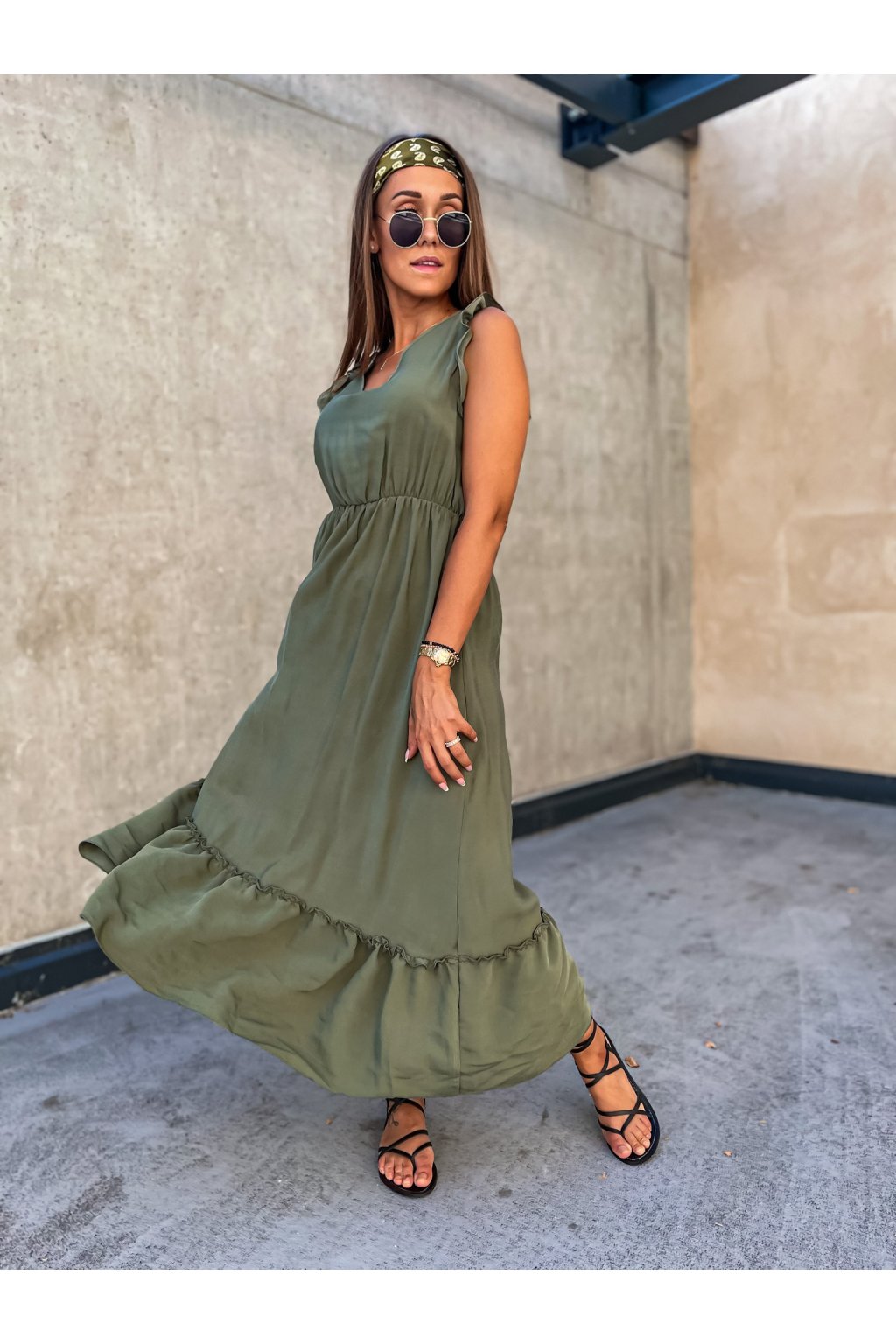 Luxusní dámské, vzdušné dlouhé šaty s volánkovými rukávy. Pěkně řešená část zad. Šaty je možné nosit bez podprsenky. Ideální na horké letní dny, ale i do chladnějšího počasí, kdy je možné k šatům nakombinovat riflovou nebo koženou bundu a tenisky.