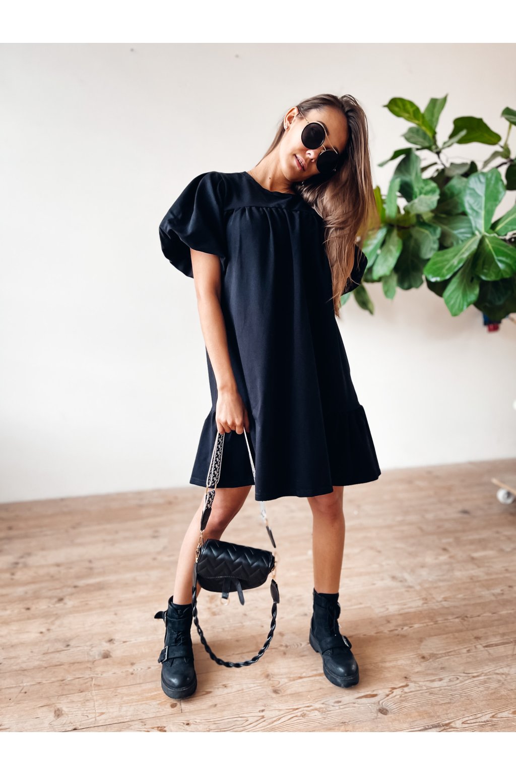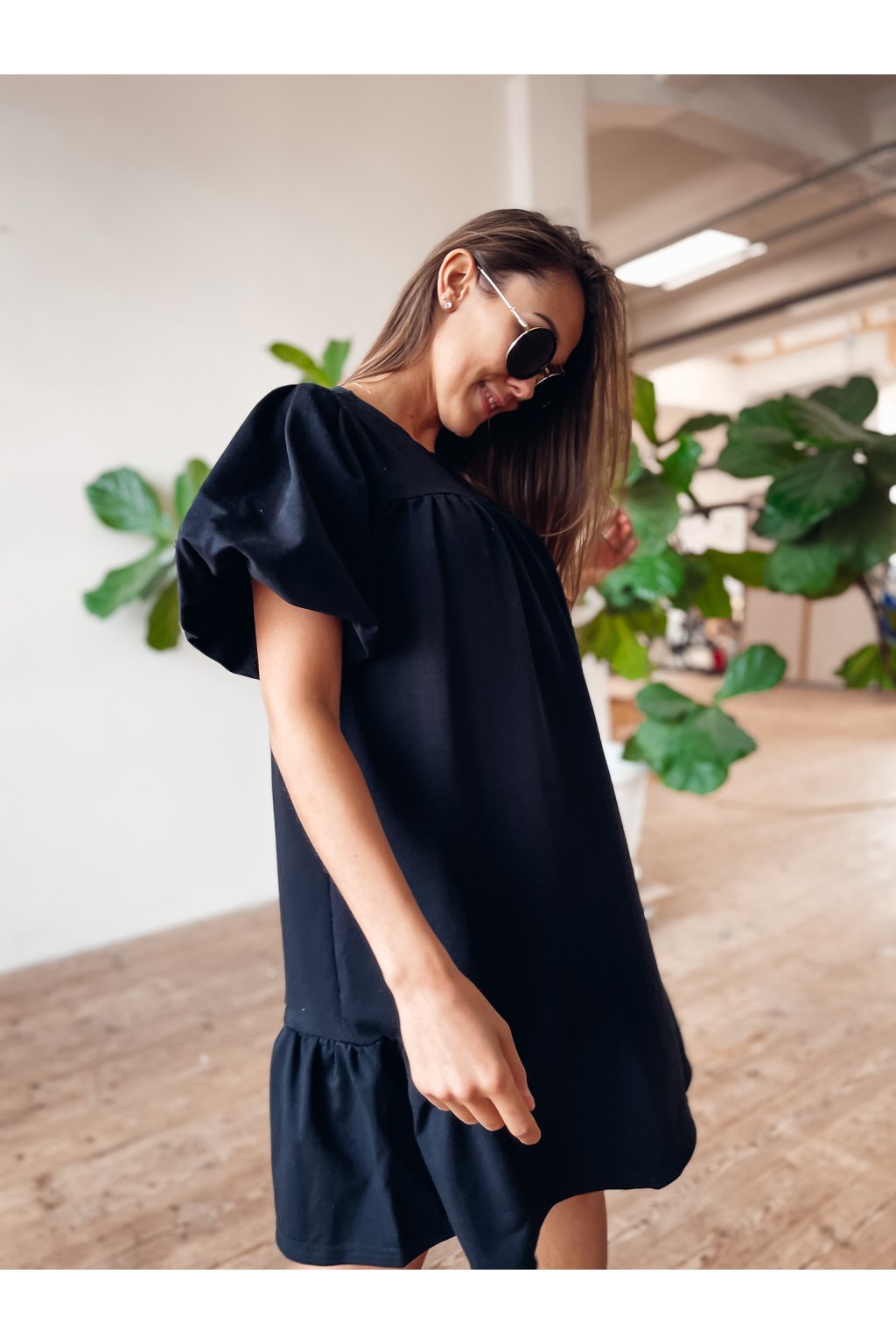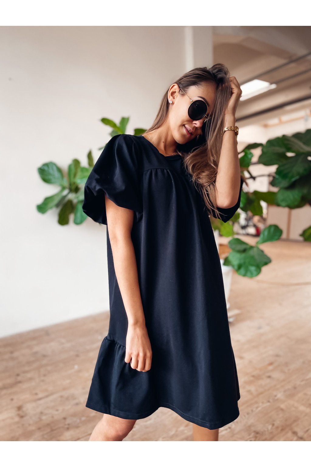 Stylové šaty volnějšího střihu s lehce volánkovými rukávy. Velmi stylový a povedený kousek.