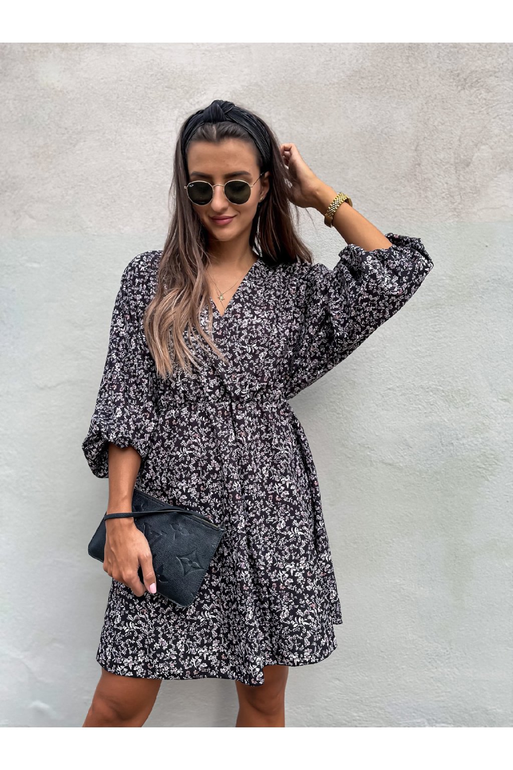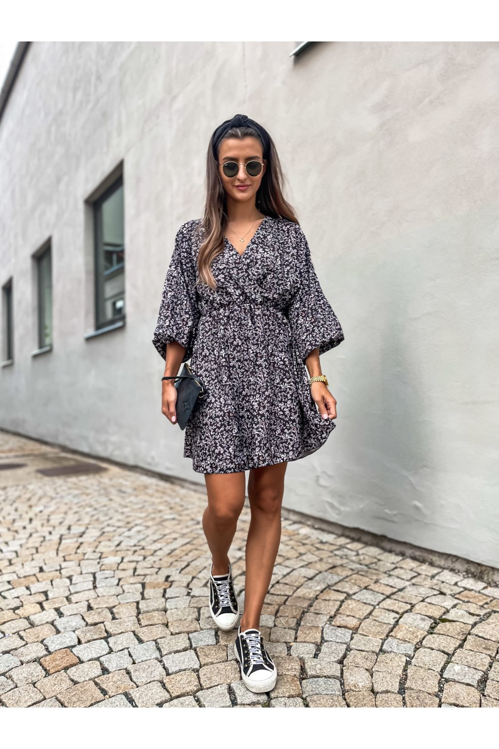 Luxusní dámské šaty s dlouhým rukávem. Rukávy mají lehce balónové rukávy a gumu pod prsy. Jsou velmi příjemné na nošení. Doplnit je můžete koženou bundou a vytvořit si tak pohodlný a stylový outfit. Hodí se jak k teniskám, biker botám, tak kozačkám nebo botám na podpatku.