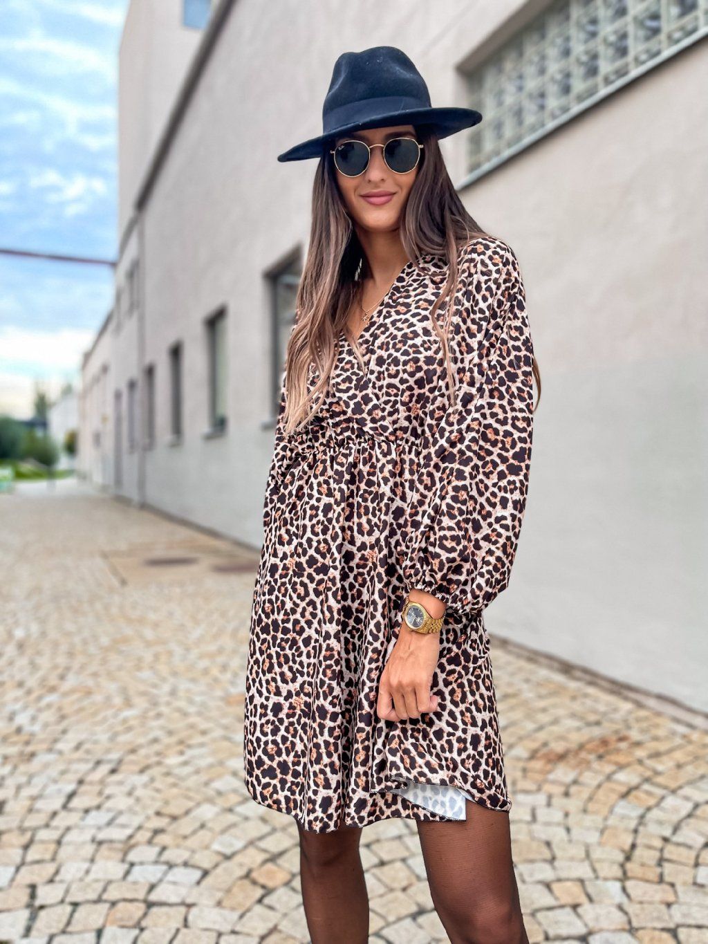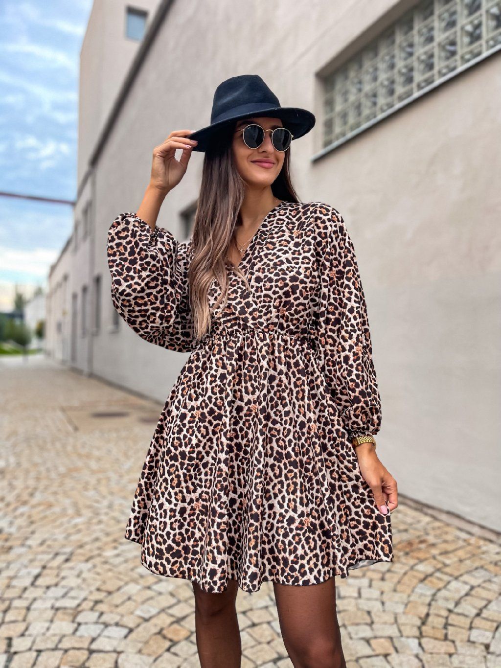 Luxusní dámské šaty s dlouhým rukávem. Rukávy mají lehce balónové rukávy a gumu pod prsy. Jsou velmi příjemné na nošení. Doplnit je můžete koženou bundou a vytvořit si tak pohodlný a stylový outfit. Hodí se jak k teniskám, biker botám, tak kozačkám nebo botám na podpatku.