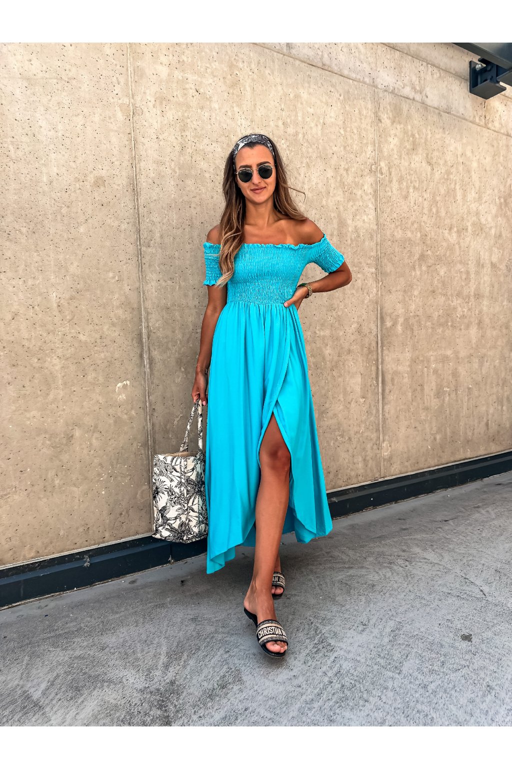 Luxusní dámské šaty s rozparkem. Díky materiálu na poprsí je možné je nosit i bez podprsenky (pěkně drží). Jsou naprosto boží na každodenní nošení i do města nebo k moři.