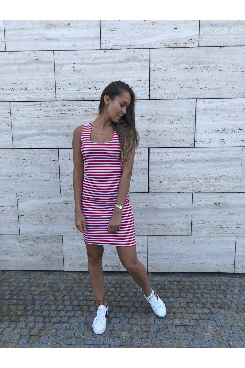 Stylové a velmi oblíbené šaty Slim v barvě Stripe Red. Klasický a nejoblíbenější střih šatů. Ideální k teniskám, sandálkům a doplnit riflovou bundou.