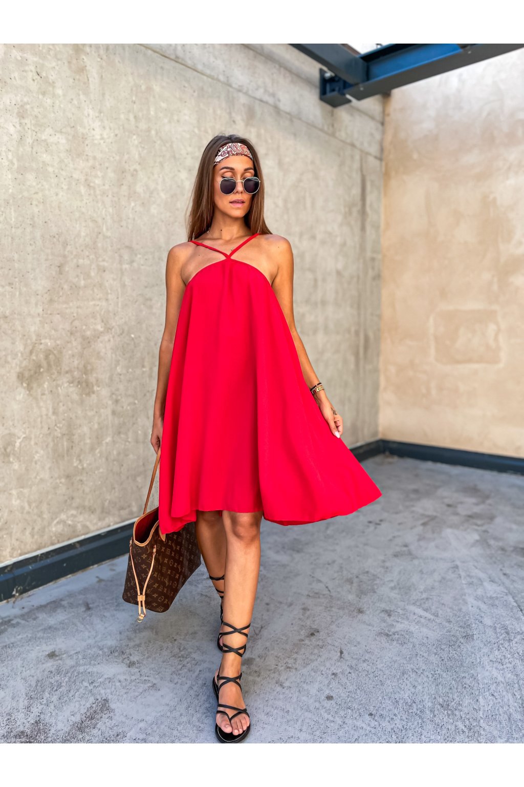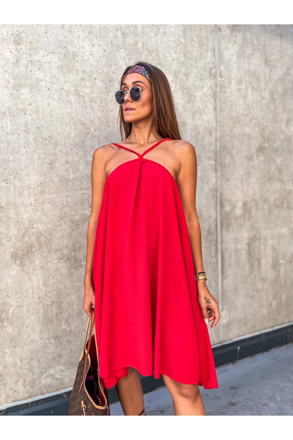 Luxusní vzdušné šaty Sunlight se zajímavým překřížením na poprsí. Vzadu jsou lehce delší a odkrývají horní část zad. Luxusní kousek na teplé letní večery, na párty, do města nebo k moři.