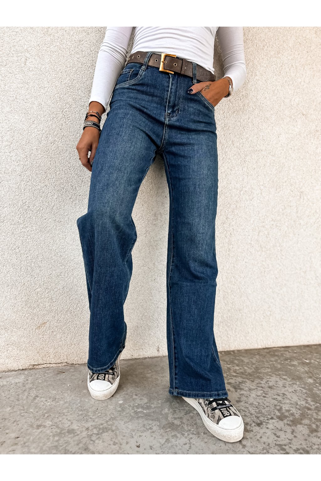 Dámské široké rifle s páskem Bobbi Navy Blue