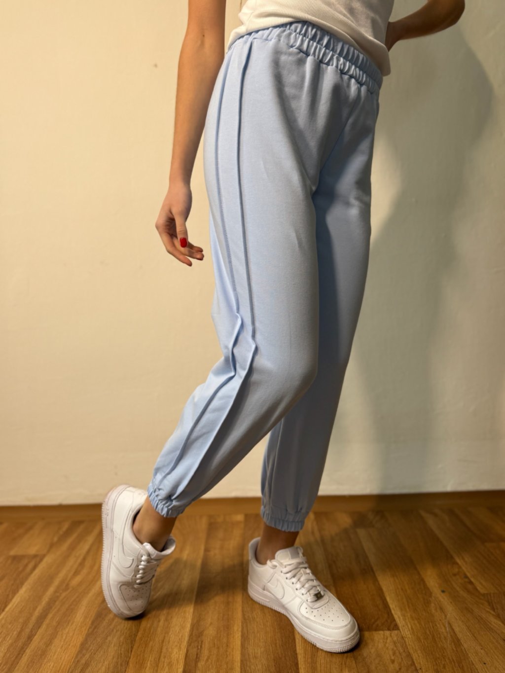 Pohodlné dámské teplákové kalhoty s gumou. V pase široká pružná guma, u kotníků příjemné stažení gumou, aby kalhoty neodstávaly. Komfortní kousek, ve kterém se budete cítit stylově, příjemně a pohodlně za každé situace. Trendy barva, krásné provedení a skvělá cena. Nelze si nezamilovat.