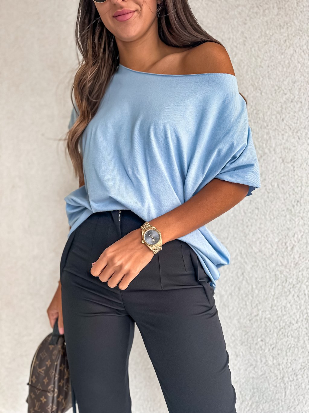 Stylové, dámské tričko s nezakončenými prvnky - rukáv, u krku i spodní část. Tričko je možné nosit klasicky na obou ramenách nebo s jedním spadeným. Za nás velmi povedený a oblíbený kousek.