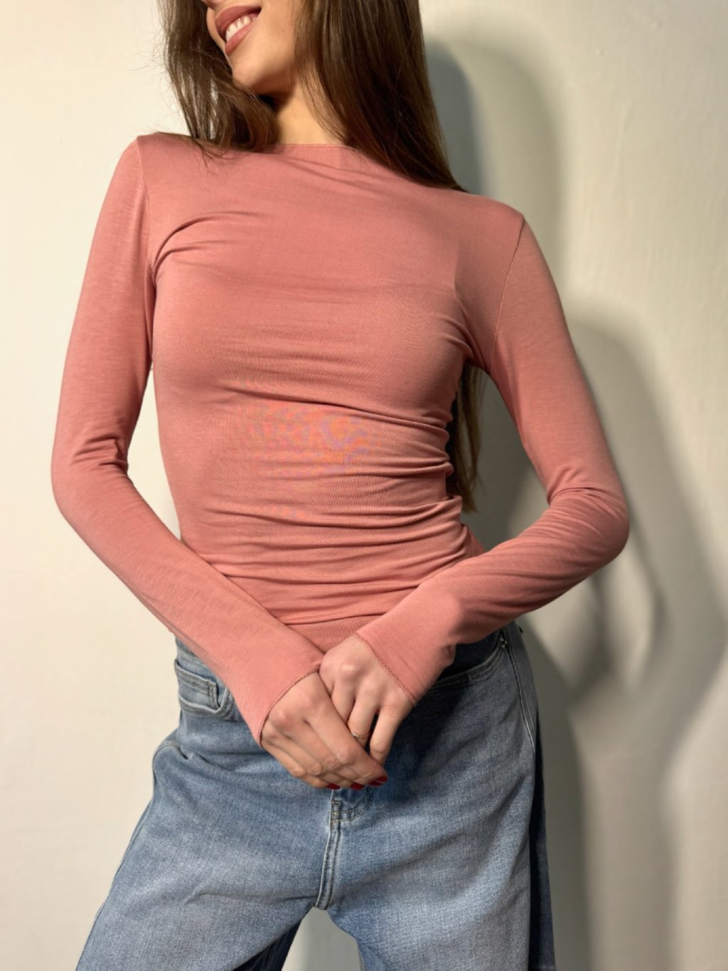 Dámské tričko Bamboo Long Sleeve s přiznanými švy Powder pink
