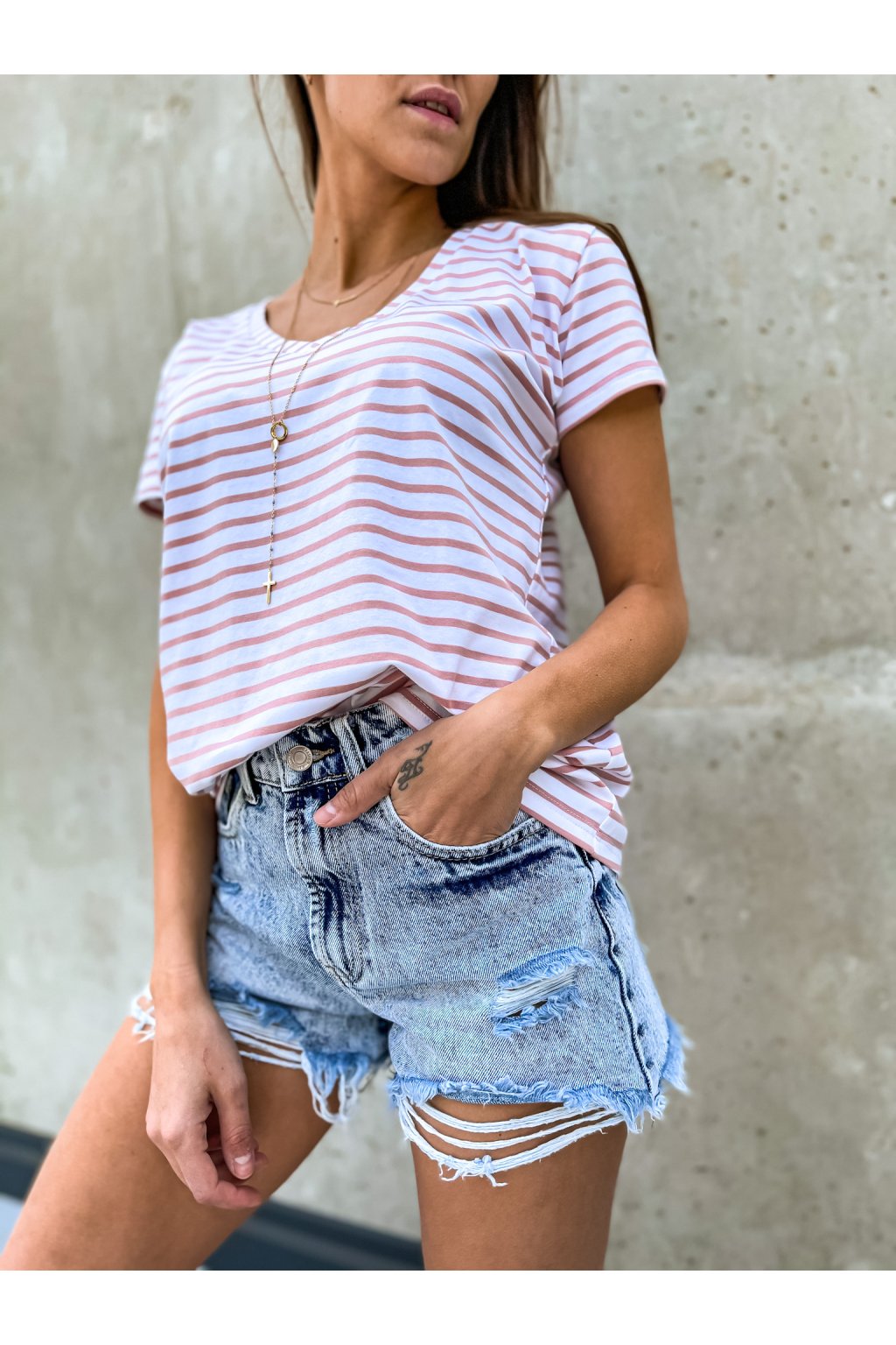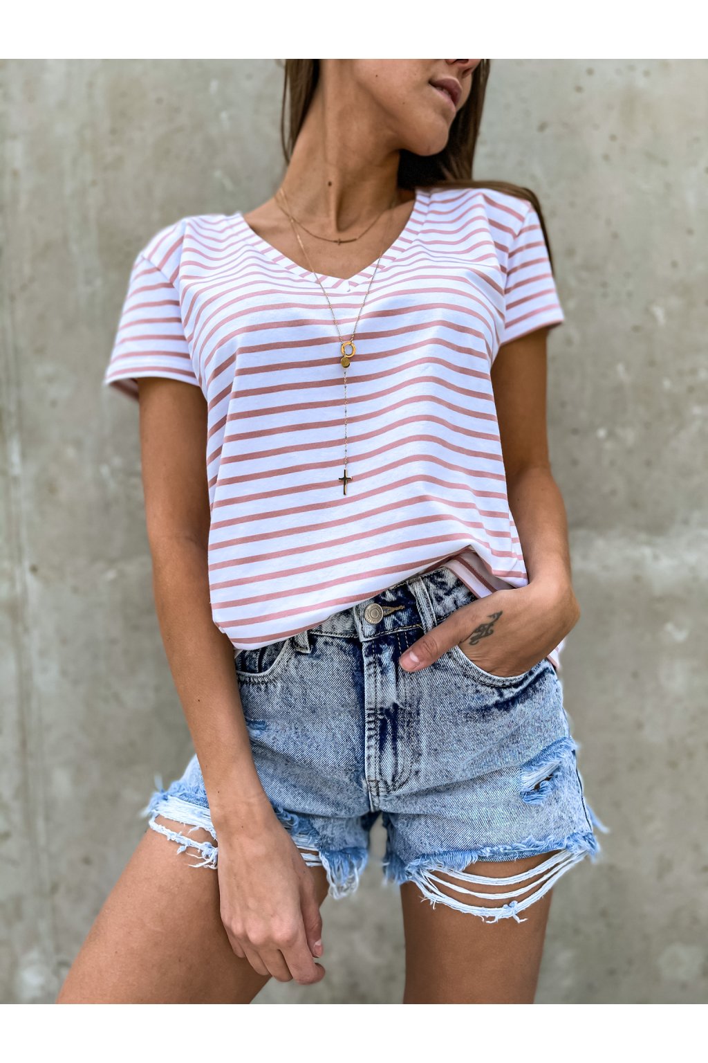 Dámské tričko Basic V Neck Stripe Powder Pink